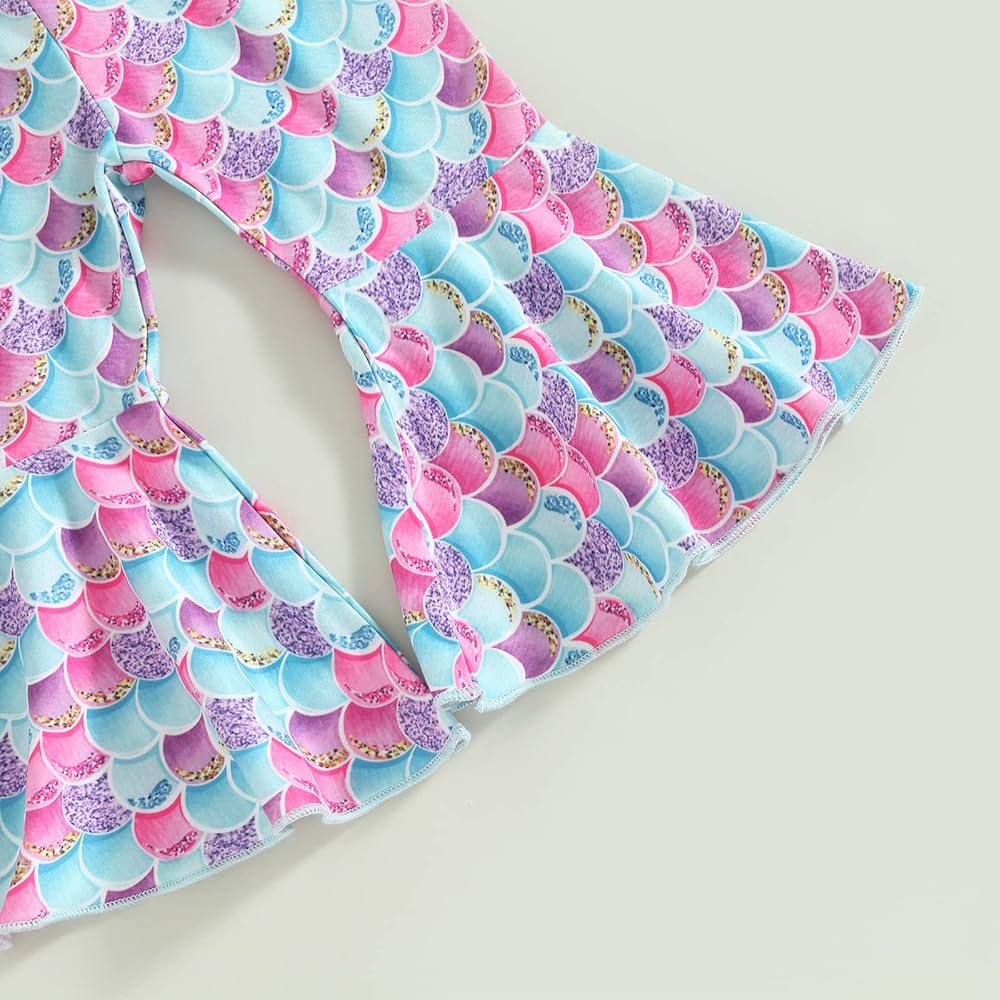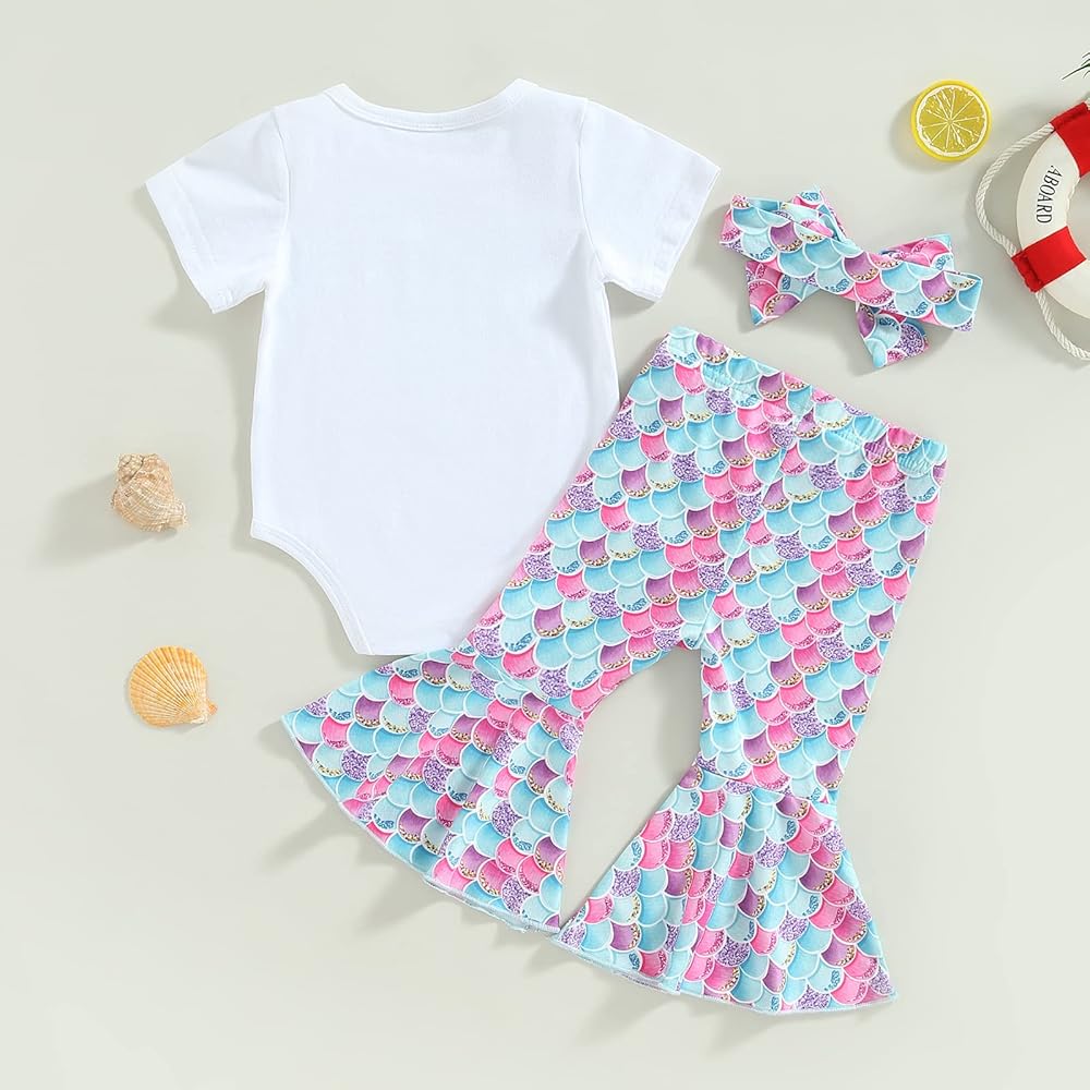 What you get: 1* white letters romper top +1* fruit flared pants +1* bowknot headband