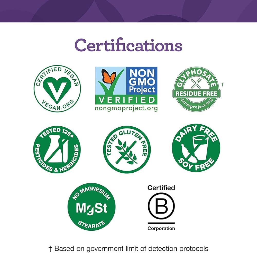 Put To The Test: Vegan; Non-GMO; Tested for over 125 chemical substances; Made without 9 allergens: milk, eggs, peanuts, tree nuts, soy, wheat, fish, shellfish, and sesame; Gluten-Free