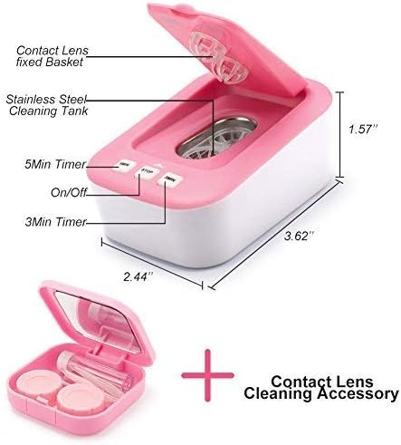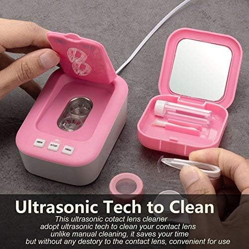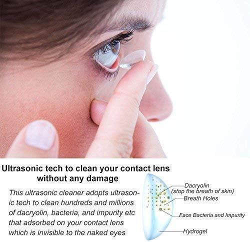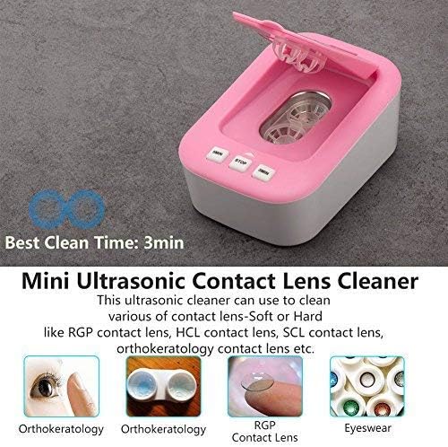 Ultrasonic Tech: Our contact lens cleaner uses ultrasonic technology with 48 kHz frequency to clean the substances such as protein deposition and other dirt. It's cleaner, safer and less time consuming than hand washing. It is suitable for any contact lenses such as soft lens, hard lens, cosmetic contact lens, RGP lens and OK lens.