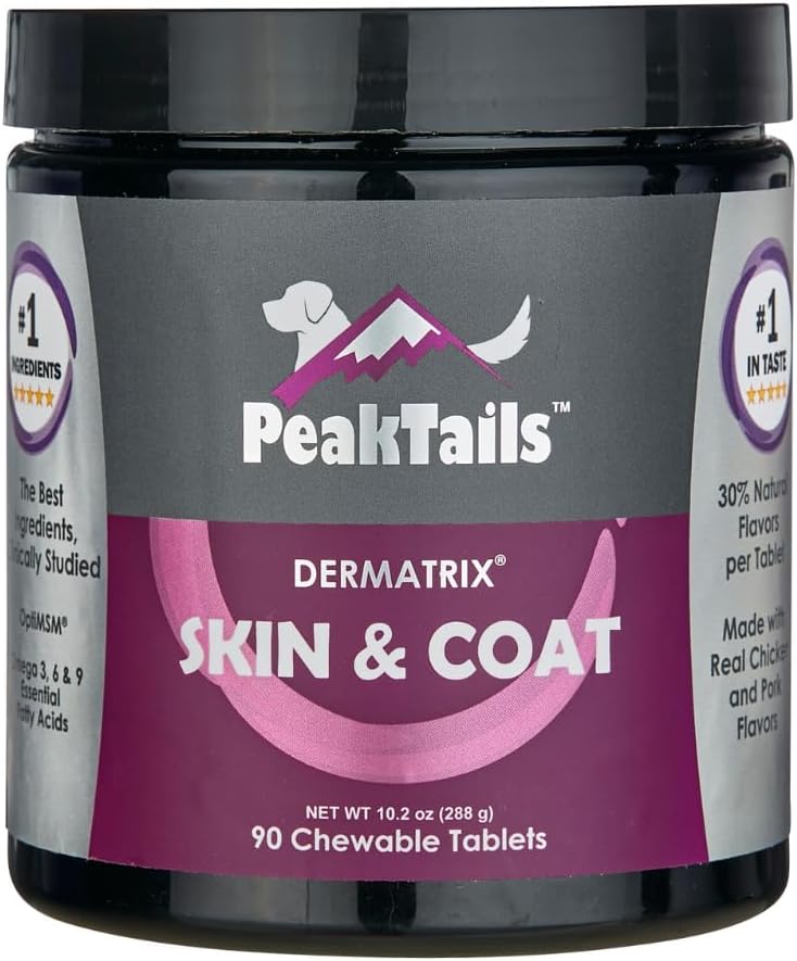 Contains: Vitamins A, E, B1, B2, B6, B12 and Zinc assisting in the treatment of skin conditions such as dry, itchy skin, hotspots, and dandruff & to improve skin and coat health and helps with skin allergies while boosting the immune health system