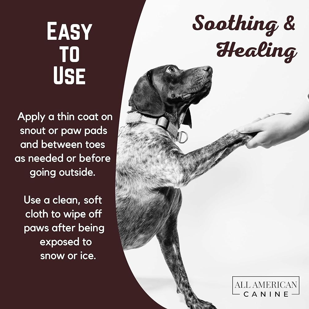 MOISTURIZE, SOOTHE, & PROTECT: Use All American Canine Paw Balm and see results within days, and in some cases, right away. If you've been worrying about the dry, chaffed, and cracked state of your poor dog's feet from rough winter weather or hot summer pavement, then buy our paw balm now to relieve your dog's paw anxiety.