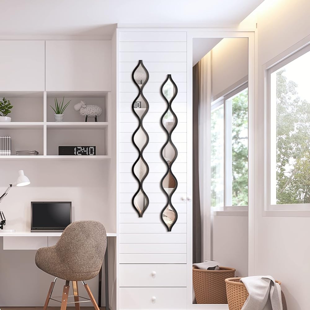 Acrylic Teardrop Mirror Wall Decor Decorative Mirror Narrow Wall Decor Boho Vintage Modern Wall Decals Art for Apartment Home Living Room Bathroom Bedroom Hallway