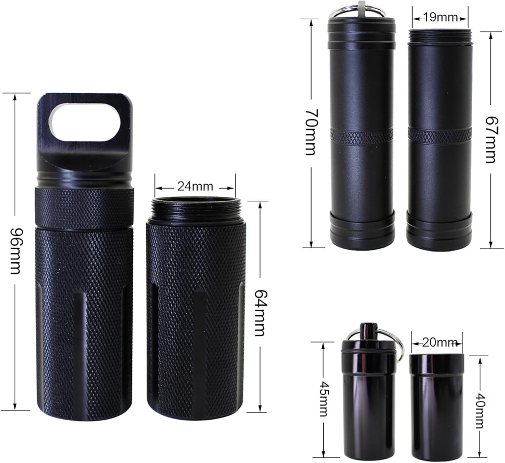 PPFISH 3 Air-Tight EDC Accessory Case, Pill Fob Capsule Keychain, Waterproof Match Case Battery Holder, Outdoor Survival Storage Metal Container Dry Box