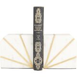 Keep your books and magazine organize with this beautifully crafted and functional bookends. This pair of durable bookends can act as focal point pieces for the living room, the office, home libraries, and study area/desks. Arrange your bookshelf with this classic and elegant marble bookends that would never go out of style. This item ships in 1 carton. Marble bookends makes a great gift for any occasion. Suitable for indoor use only. This item ships fully assembled in one piece. Marble is a product of nature and no two pieces are exactly alike. It is prone to variations in color and/or patterns in the material that add to the beauty and charm of the piece.. Made in India. This white colored non skid bookends comes as a set of 2. Modern style.