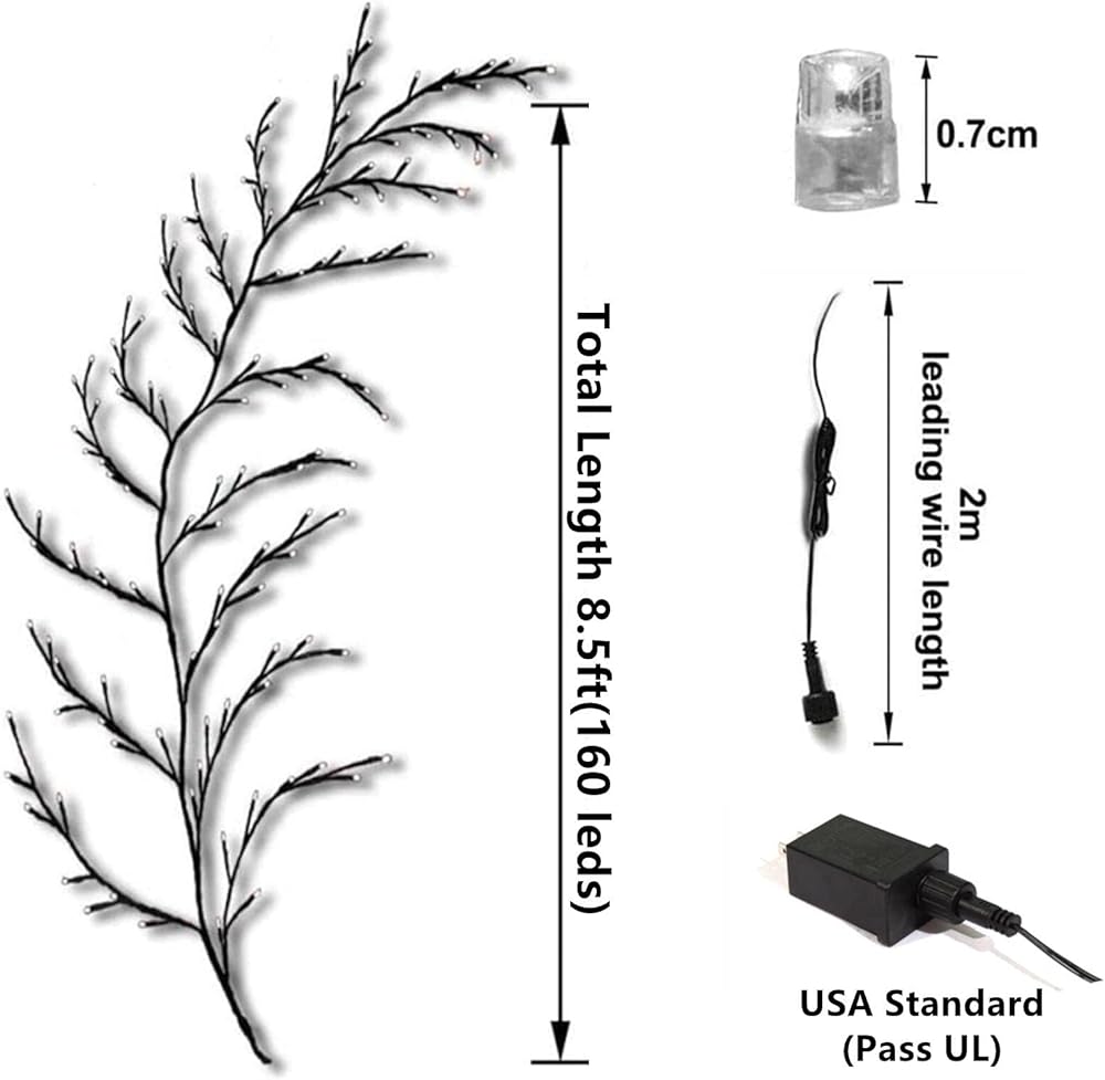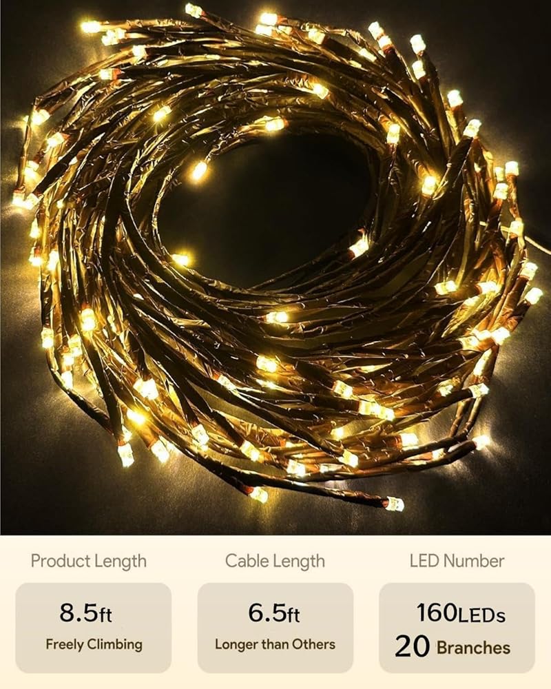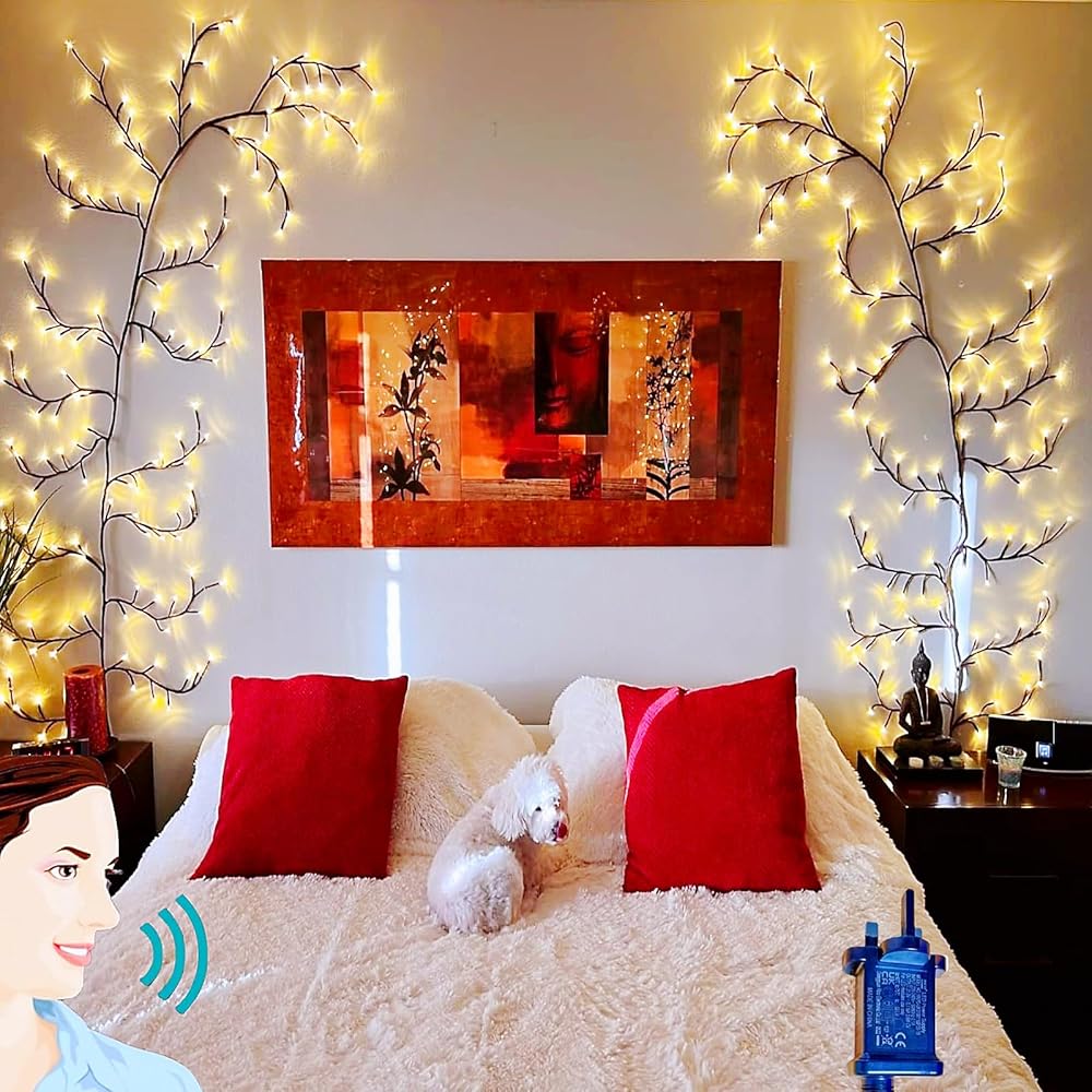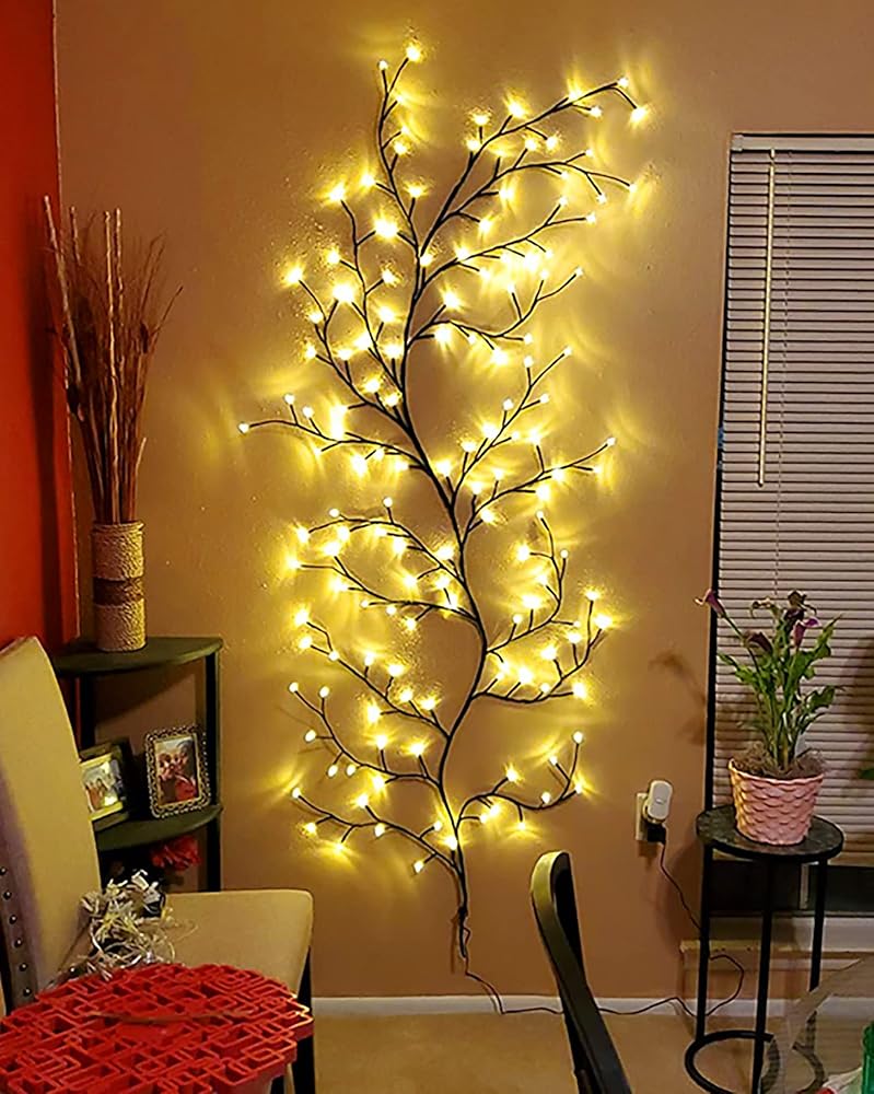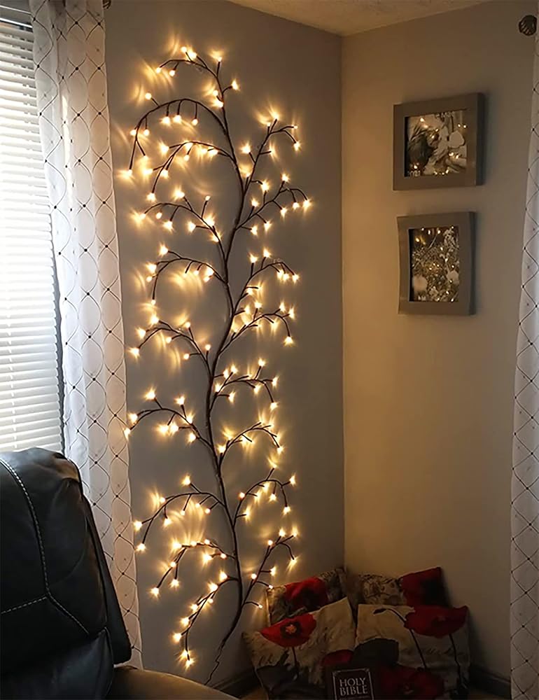 🔥【Flexible and Sturdy for DIY】 Each branches, stems and twig can be easily to bent into different shapes to fit your decorating needs. Perfect for home daily and holiday home DIY decor. Vines lights does NOT come with stand or item to adhere to wall. We recommend that you use rope hooks, nails, suction cups, scotch tape, etc. to hang on the wall