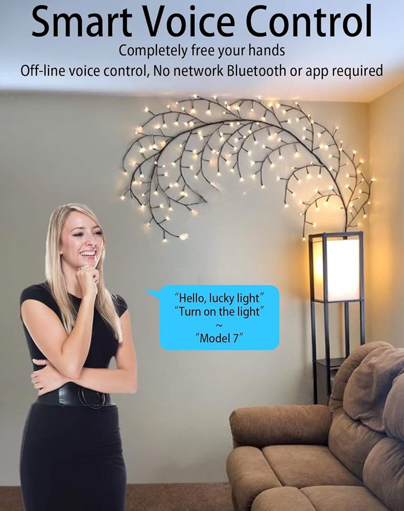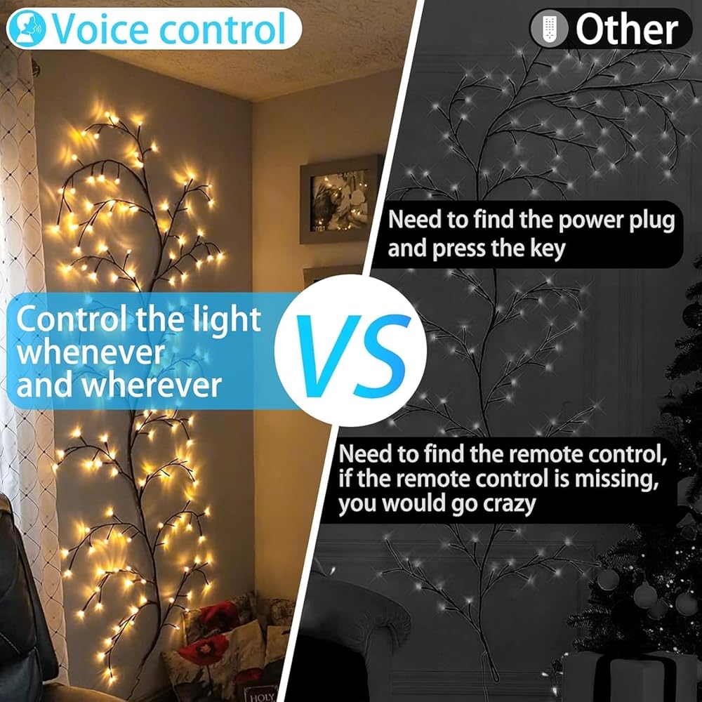 Willow Vine Lights,Intelligent Voice Control 8 Flash Model Twinkling Tree, 8.5ft Flexible Tree 160 Leds for Living Room Bedroom Decorations, Lighted 20 Branchs for Wall Corner Decor(Voice+Key Control)