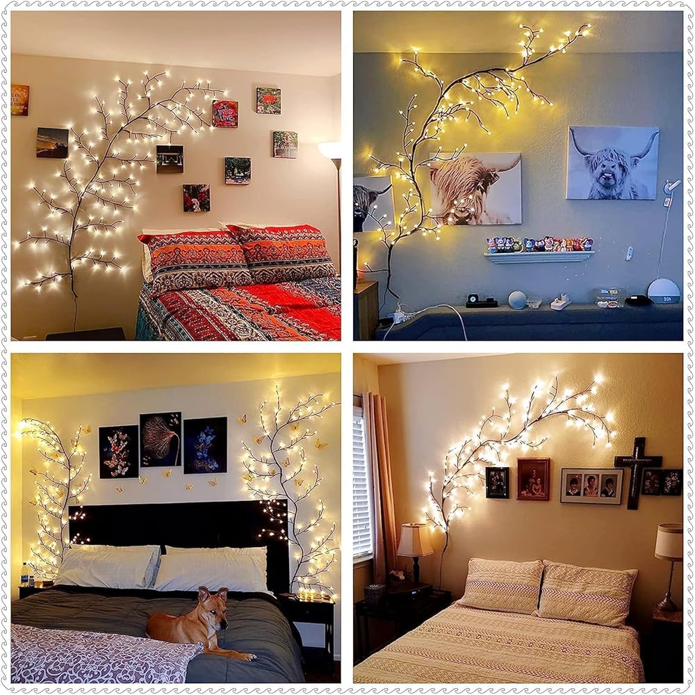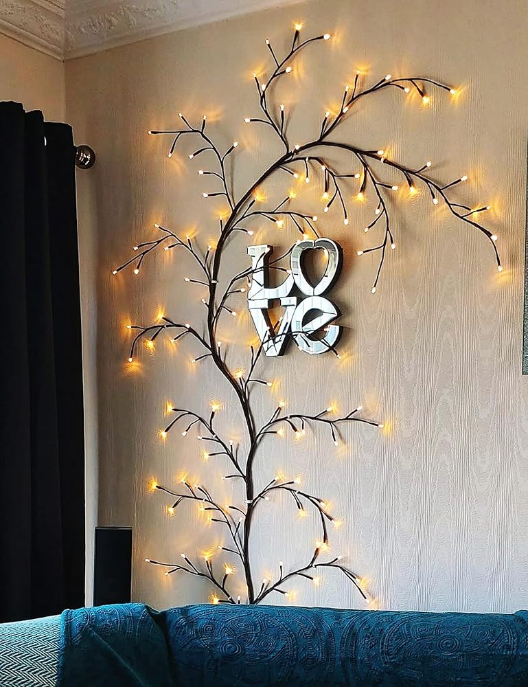🔥【8 Enchanted Lighting Modes Widely Use】 Lighted willow branches have 8 beautiful light effects to choose from: combination, waves, sequence, glowing, chasing, slow fade, twinkle, and steady on. This big light up wall decor can be used to decorate walls, bedrooms, corner, living room, fireplaces, windows, patios, and Christmas trees, ideal decor for parties, festivals, and more. Use your creativity