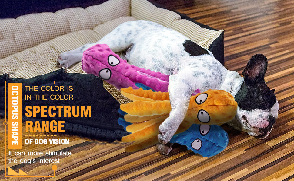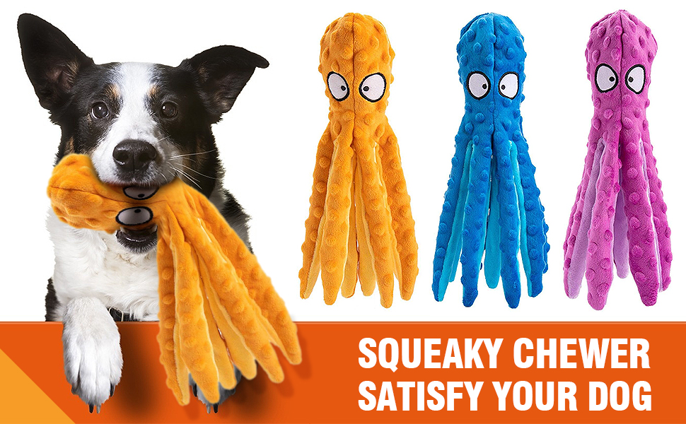 Unique Appearance: With 3 different colors and exquisite cartoon octopus image, our dog squeaky toys are will be attractive to your dog. Besides, the 8 paws of octopus dog toys can be opened or closed as you want, showing interesting and eye-catching appearance in front of your pets.
