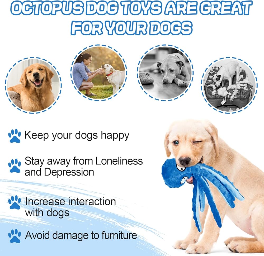 Squeaky Dog Toys Christmas Dog Gifts - Octopus Toys for Dog Toys to Keep Them Busy, Tough No Stuffing Plush Puppy Toys, Crinkle Interactive Puppy Chew Toys for Teething Small Medium Dogs(1pcs)