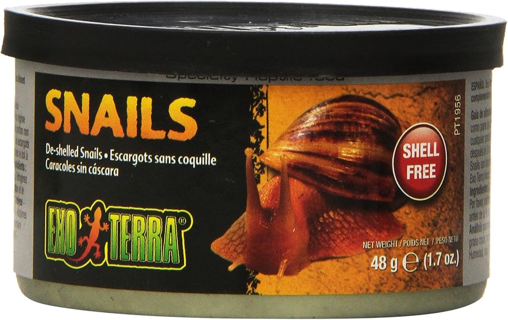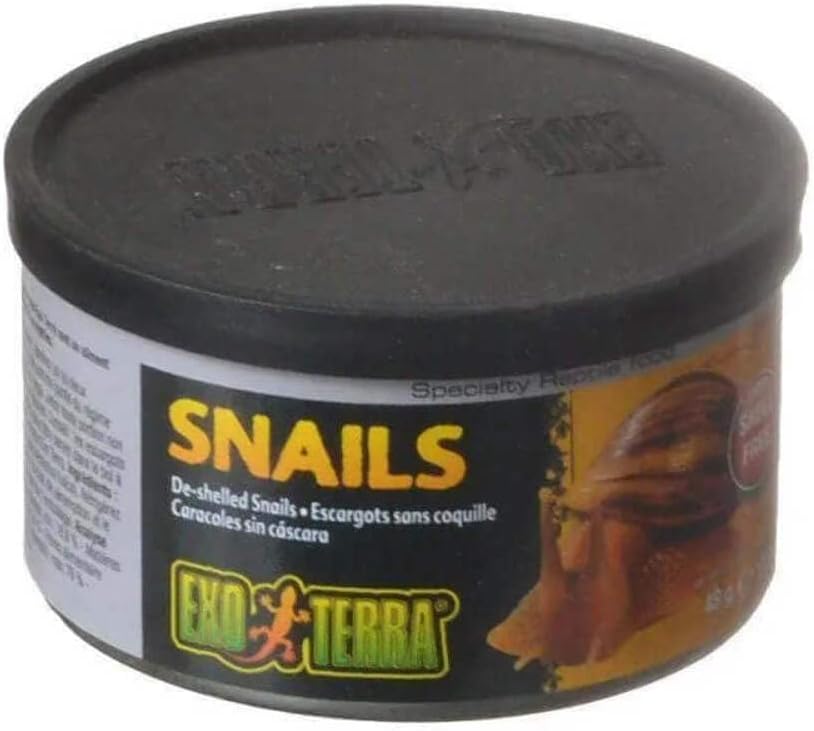 The Exo Terra canned foods are a convenient way to feed insects. These insects (and snails) have been cooked in the can to maintain nutritional value, flavour and aroma. It also softens the exoskeleton of the insects for easier digestion and breaks the bonds between the collagen protein to make it absorbable by reptiles. Collagen is an important fibre that aids in building bone, cartilage, skin and claw structures. The canned insects have the same nutritional value as live insects but are easier to digest. No live insects need to be fed in addition to these canned foods.