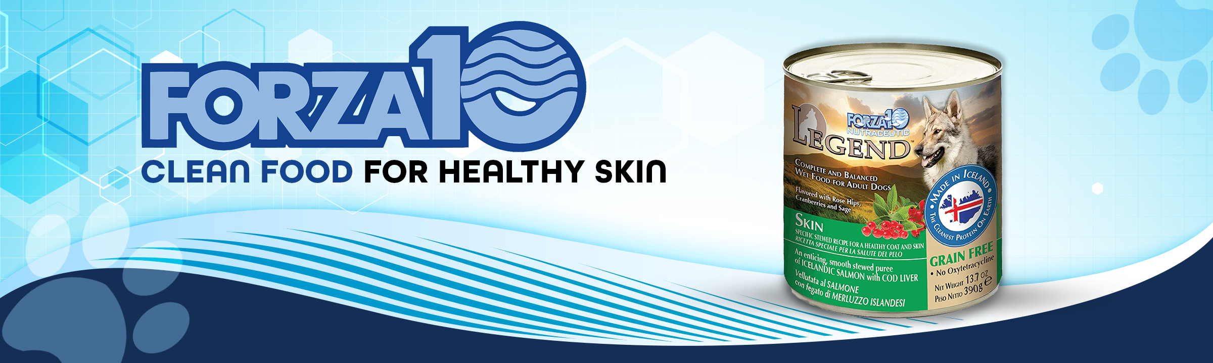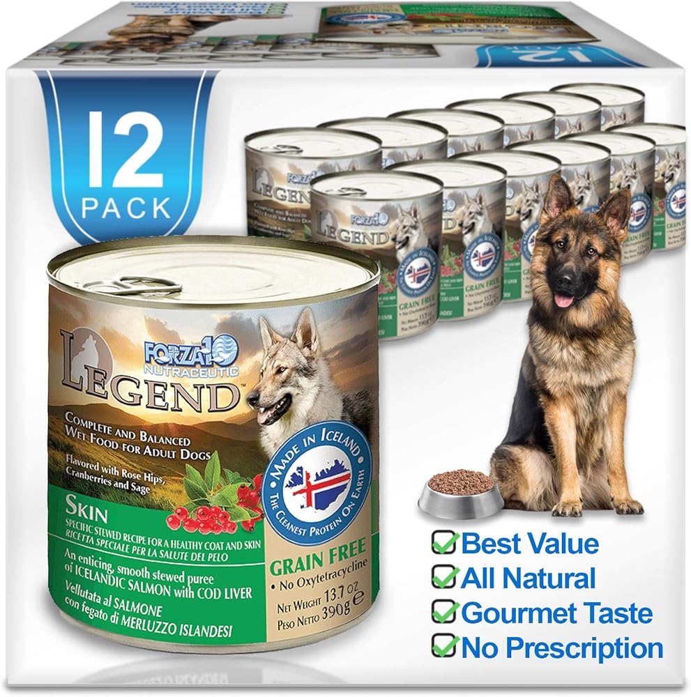 Forza10 Legend Skin Wet Dog Food, Omega 3 Canned Dog Food Grain Free Sensitive Skin Health, Dry Skin Fur Loss, 13.7 oz, Salmon, Adult Dogs, 12 Case