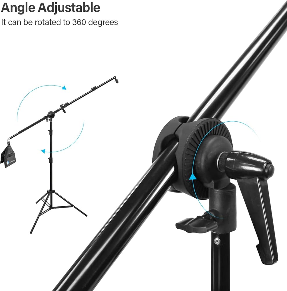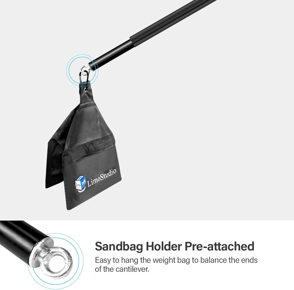 Boom Arm with Light Stand Tripod Mount, Max 82 inch Long Crossbar Arm, Length Adjustable, Compatible with Any Tripod Stand, Counter Weight Sand Bag, AGG289