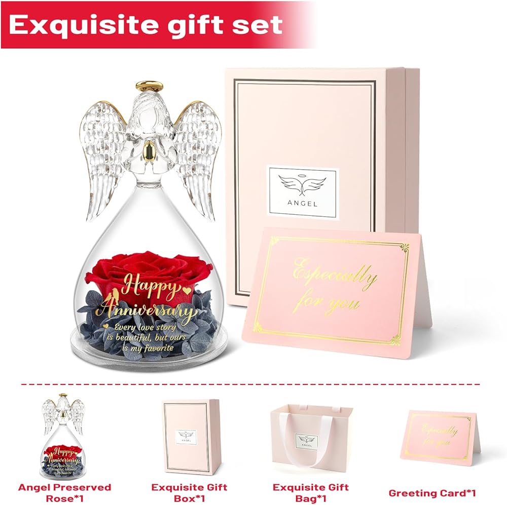 Cherish moments with our Angel Rose Figurines, meticulously crafted gifts for women that speak volumes. Each preserved rose is a symbol of enduring love, lasting 3-5 years without the need for watering or sunlight. This Christmas, surprise her with a unique and thoughtful gift set, bringing joy to birthdays, anniversaries, Valentines, and more.