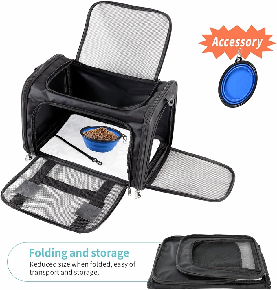 【Good Comfort】3 sides ventilating outlet, front and rear convection, provide your pet with a safe and comfortable travel. The bottom blanket provides a cozy space for pets to nap comfortably, and the blanket is completely removable and machine washable.