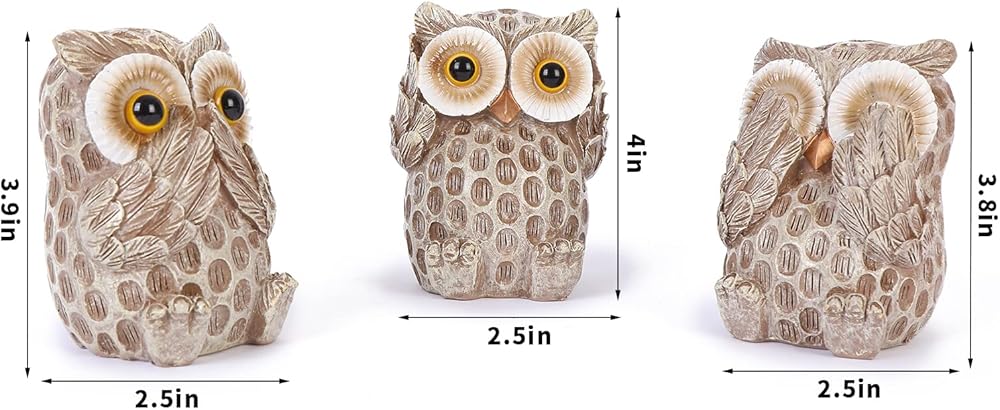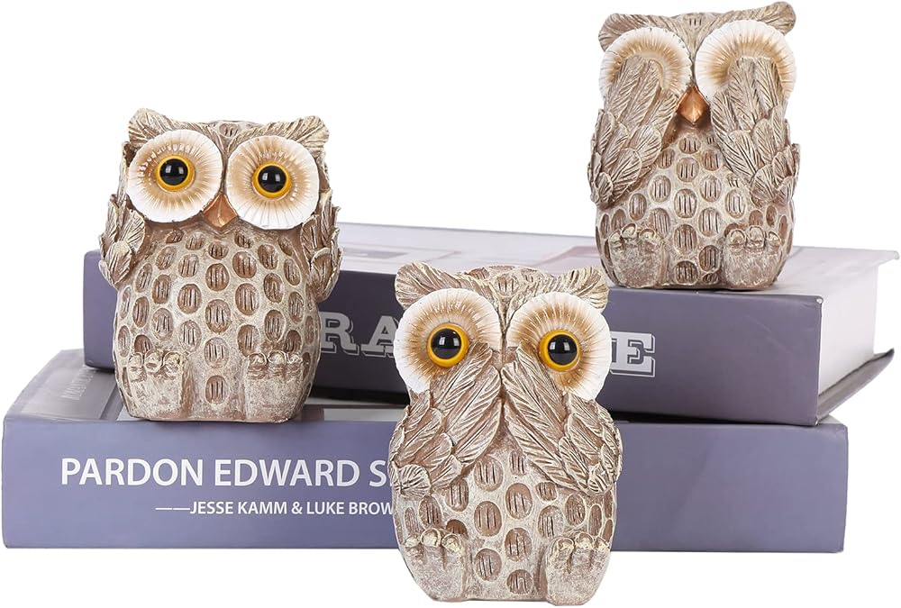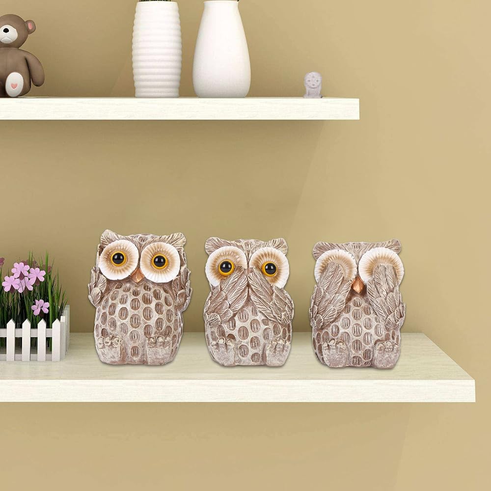 <b>Unique Design Idea.</b>The cute owl statue uses three different gestures and cute ways to express three different moods(see no evil, hear no evil, speak no evil). These three lovely owl sculptures can decorate your space.