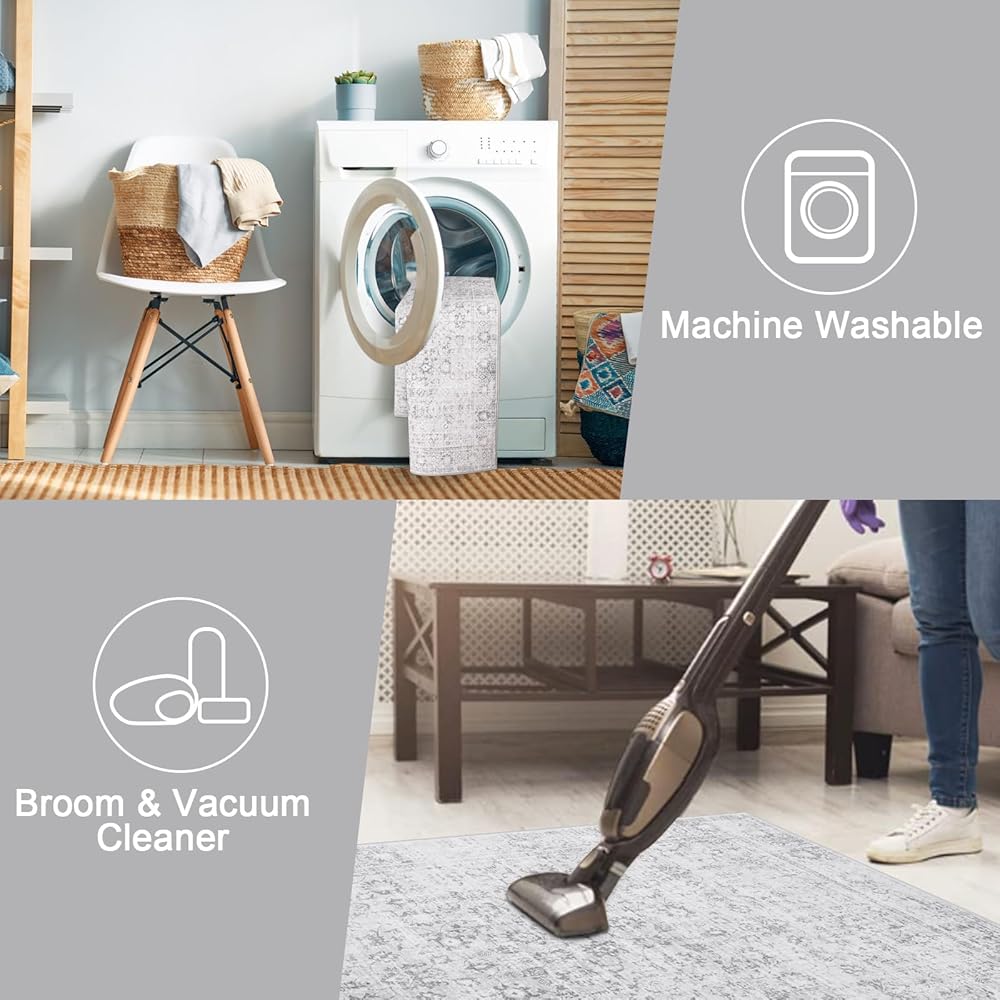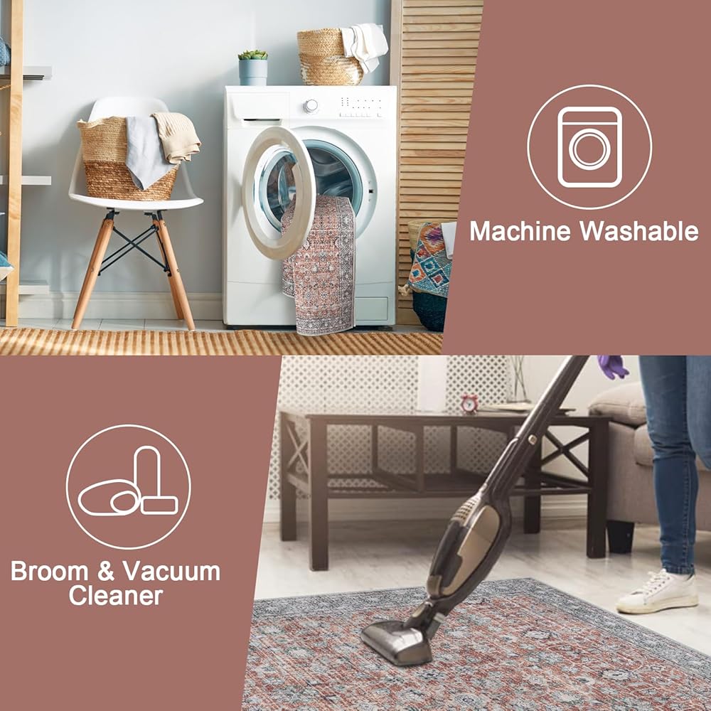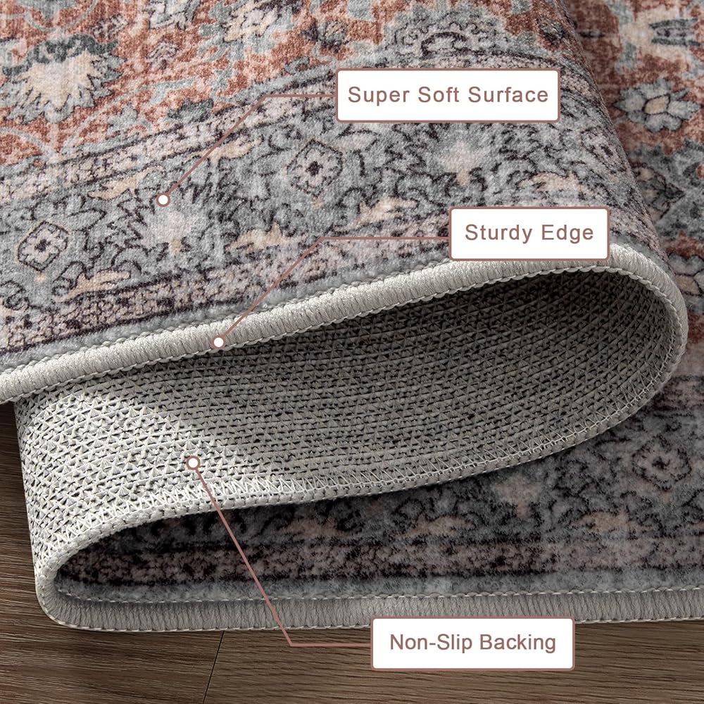 LIVEBOX Machine Washable Area Rug for Kitchen,Ultra Soft Non-Skid Lightweight Rug for Living Room,Retro Bohemian Low-Pile Rugs for Doorway Front Door Bedroom Patios Camper Van RV