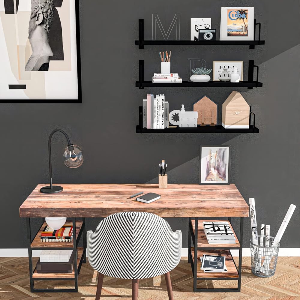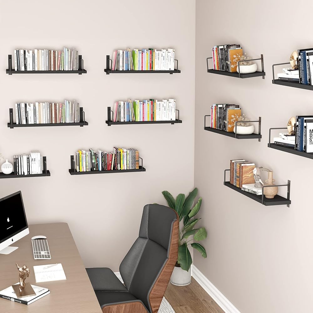 [Long Floating Shelf] Each of the EALLRINEC wooden wall shelf measures 24" x 6" with a modern minimalist design, approaching for a much safer storage. Collectibles, albums, books, toys, artwork, trophies, small plants and more can be put on it