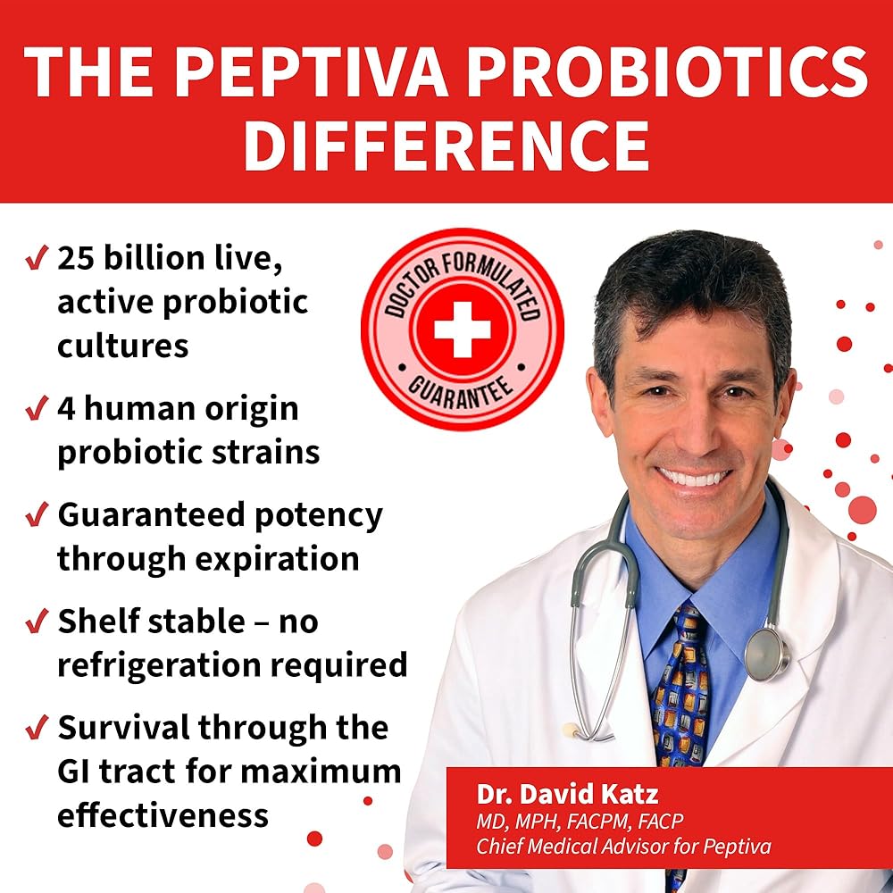 25 BILLION CFU: Peptiva delivers 25 billion live, active probiotic cultures in every one-capsule serving. Peptiva is tested and guaranteed to survive harsh stomach acid and maintain full label potency through the expiration date. No refrigeration required