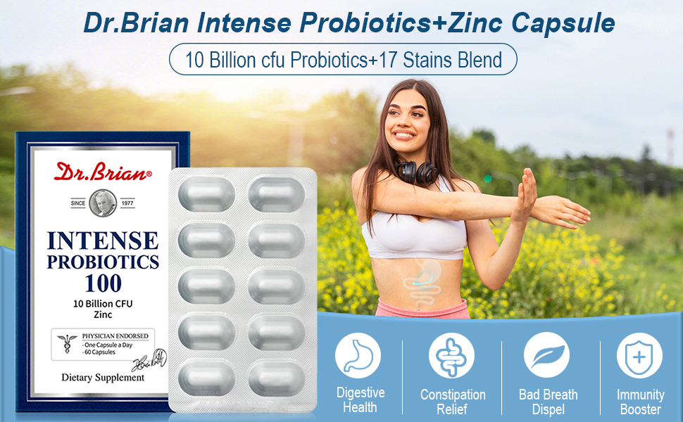 1. 10 Billion cfu Probitics Plus zinc: Dr. Brian probiotics for women and men contains 10 cfu self table probiotics and zinc per serving.
