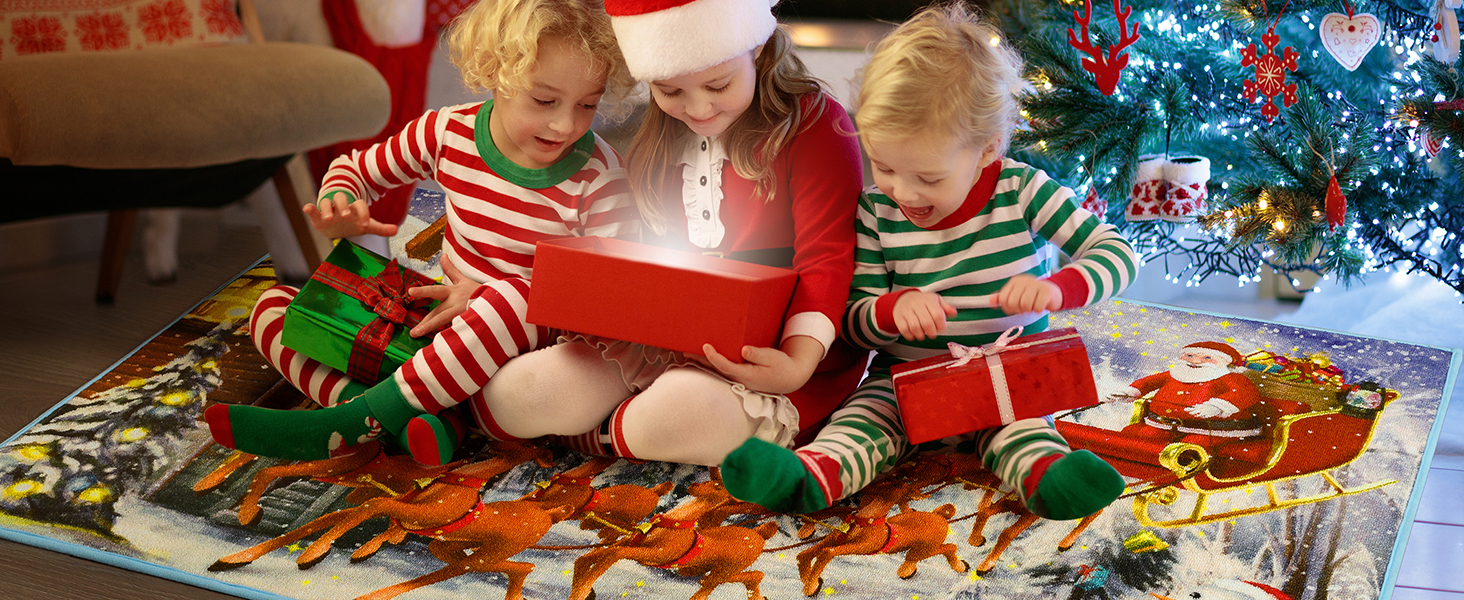 【Luxury Design】The surface of the Christmas rug is made of high-quality nylon, which makes the rug soft and comfortable. The fabric uses a coil process to increase the wear resistance, the bottom is made of TPR, which has a strong anti-slip, making rug close to the floor, you can play freely on it.