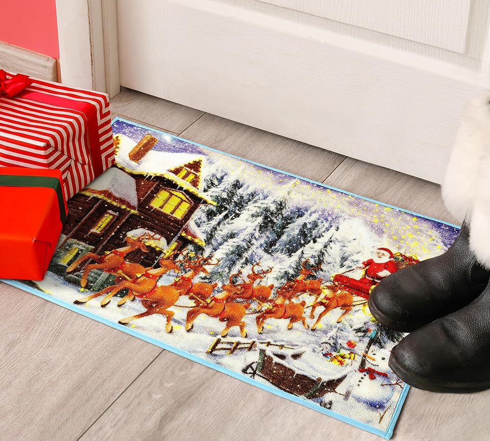 【Christmas Room Decor】The 2X6 feet Christmas decor rug is perfect as a door mat, welcome rug, entrance and entryway mat. As a small rug, you also can put it in bedroom, kitchen, living room near sofa or fireplace, kids room.You can put it near Christmas tree as a Christmas decor.