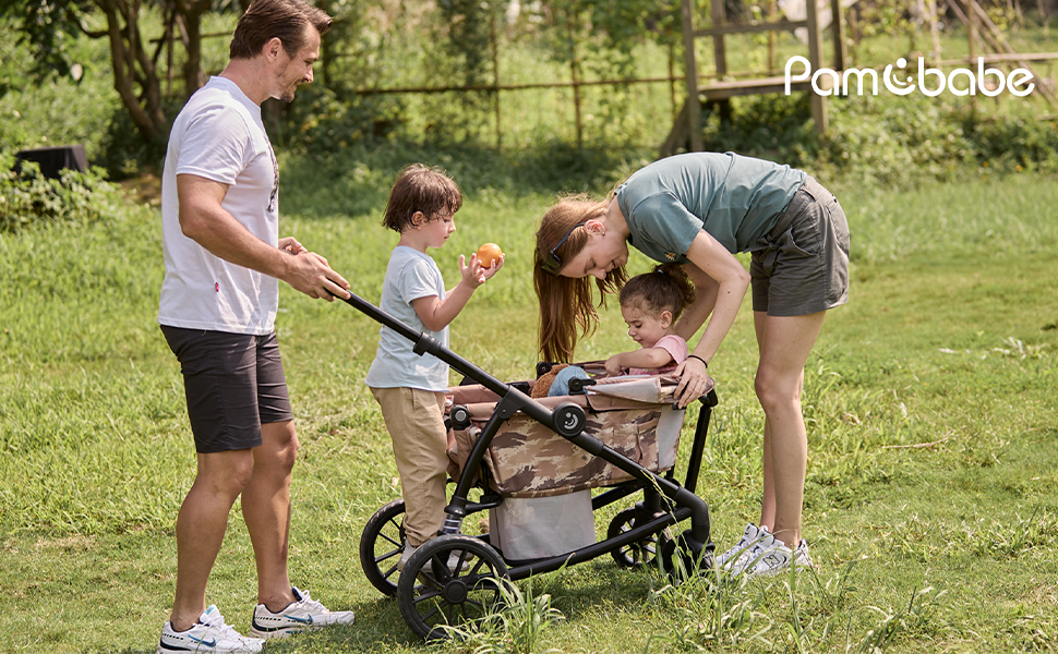 As your kids grow: Rear standing pedal design,you can transform your wagon stroller into a stroller that accommodates up to over 5-year-old.