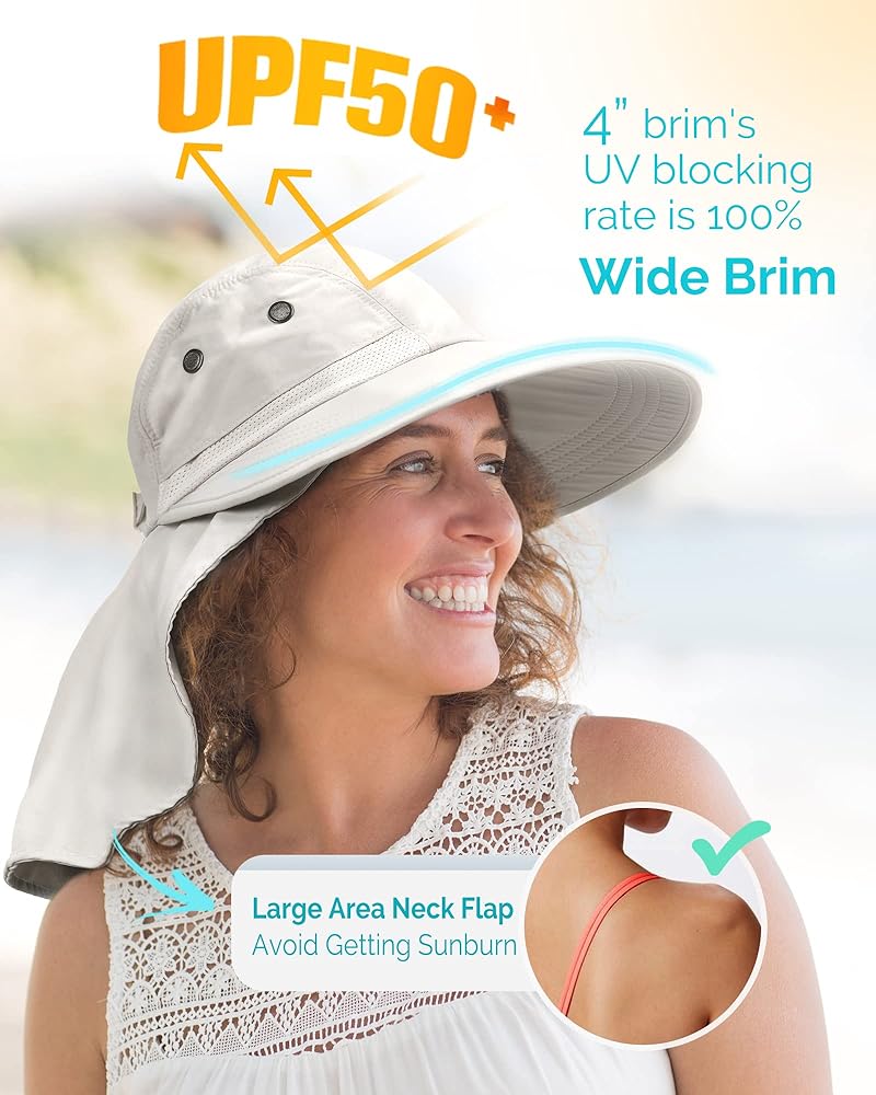 Wide Brim Hat With UPF 50+ Sun Protection, the Sun Hat Blocks 98% of UV Rays; Our UV hat features a 3.9-inch brim and 7.5-inch extra back coverage, providing a better protection for face, ear and neck, so the sunblock hat can last for summers to come