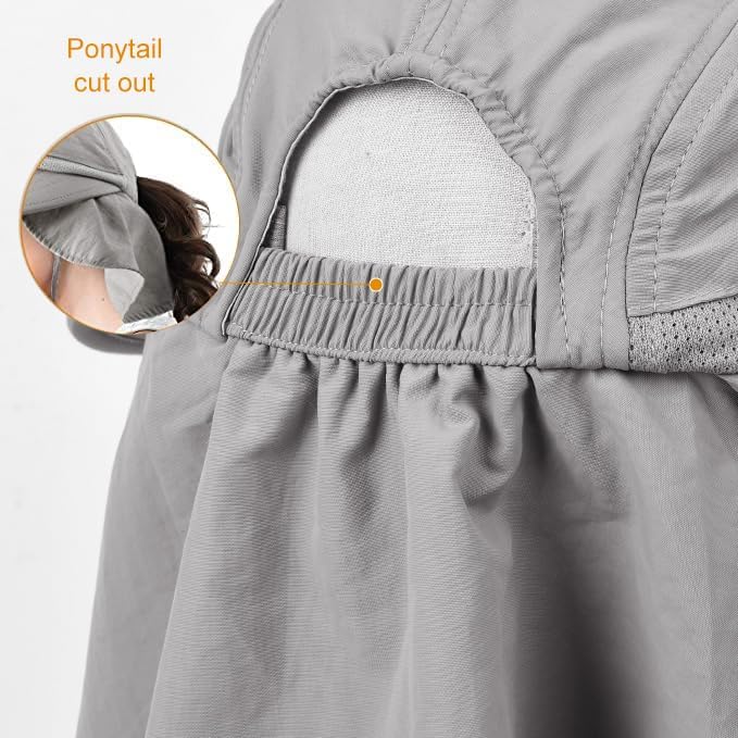 Fishing hat One Size Fits All: With a head circumference of 22-23.2 inch and elastic drawcord with toggle as size adjuster, the sun hat can fit all head; The ponytail at the back of the hat is made for girls to pack up messy hair; There are several colors for both men and women