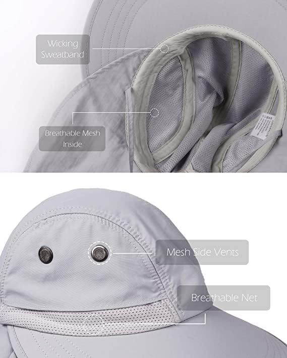 Hiking Hat with The Mesh Side Vents Designs for Superior Airflow; The internal moisture wicking 1.18 inch(3cm) workout sweatband of the sun hat designs for to quickly clearing sweat from your face, brow, and stop your sweat running into your eyes