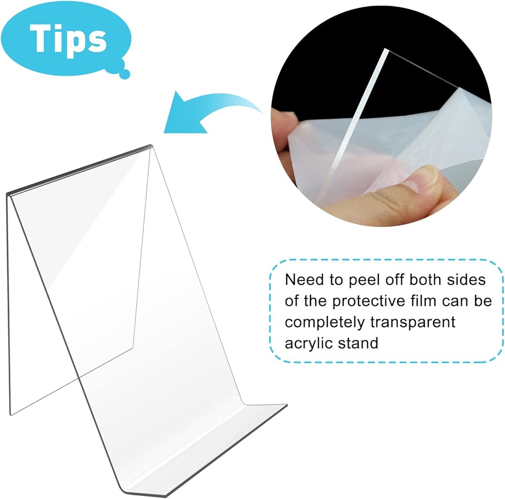 Please Note: In order to ensure that the acrylic holder are not scratched and dust contamination, these acrylic stands for display are covered with protective film on both sides, please remember to tear off the protective film before use, in order to get a completely group transparent display.