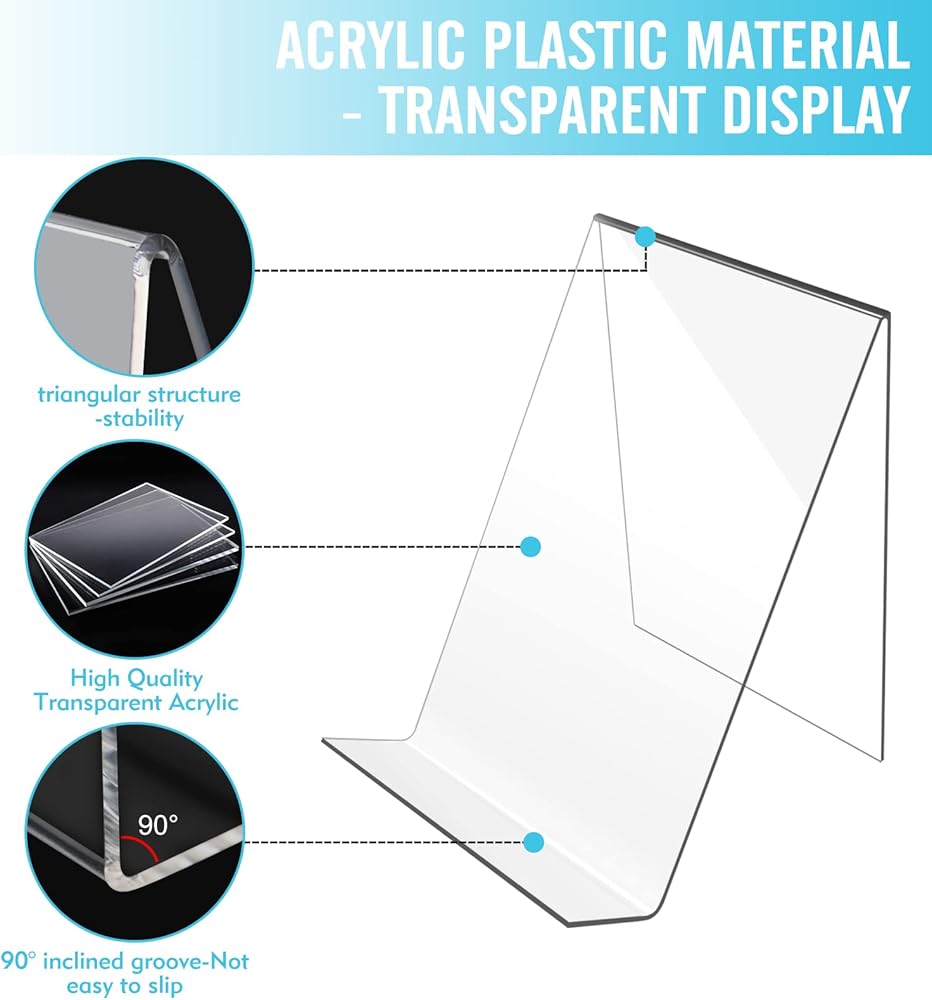 Multipurpose :Acrylic display stand is perfect for displaying comic books, photos, tablets, keyboards, marketing ads, or some of your artwork, collectibles, CDs, etc. You can use it in many occasions, such as home, office, library, comic store, store, etc.