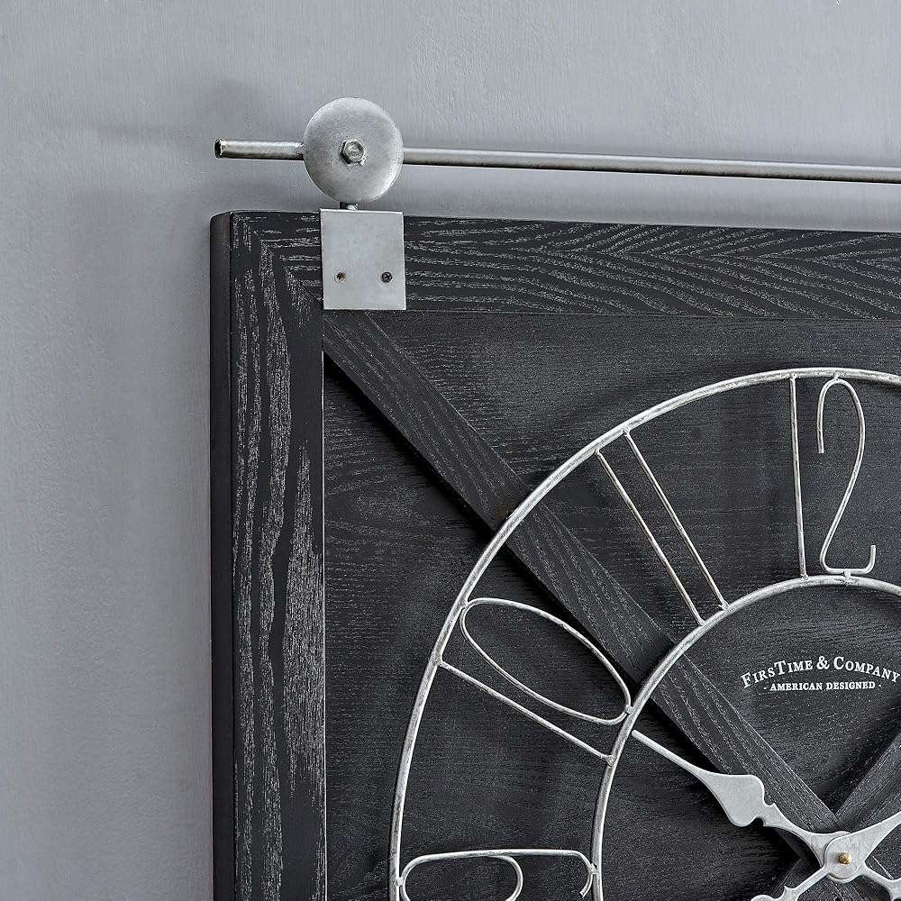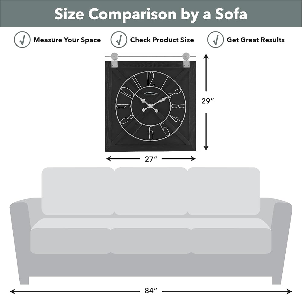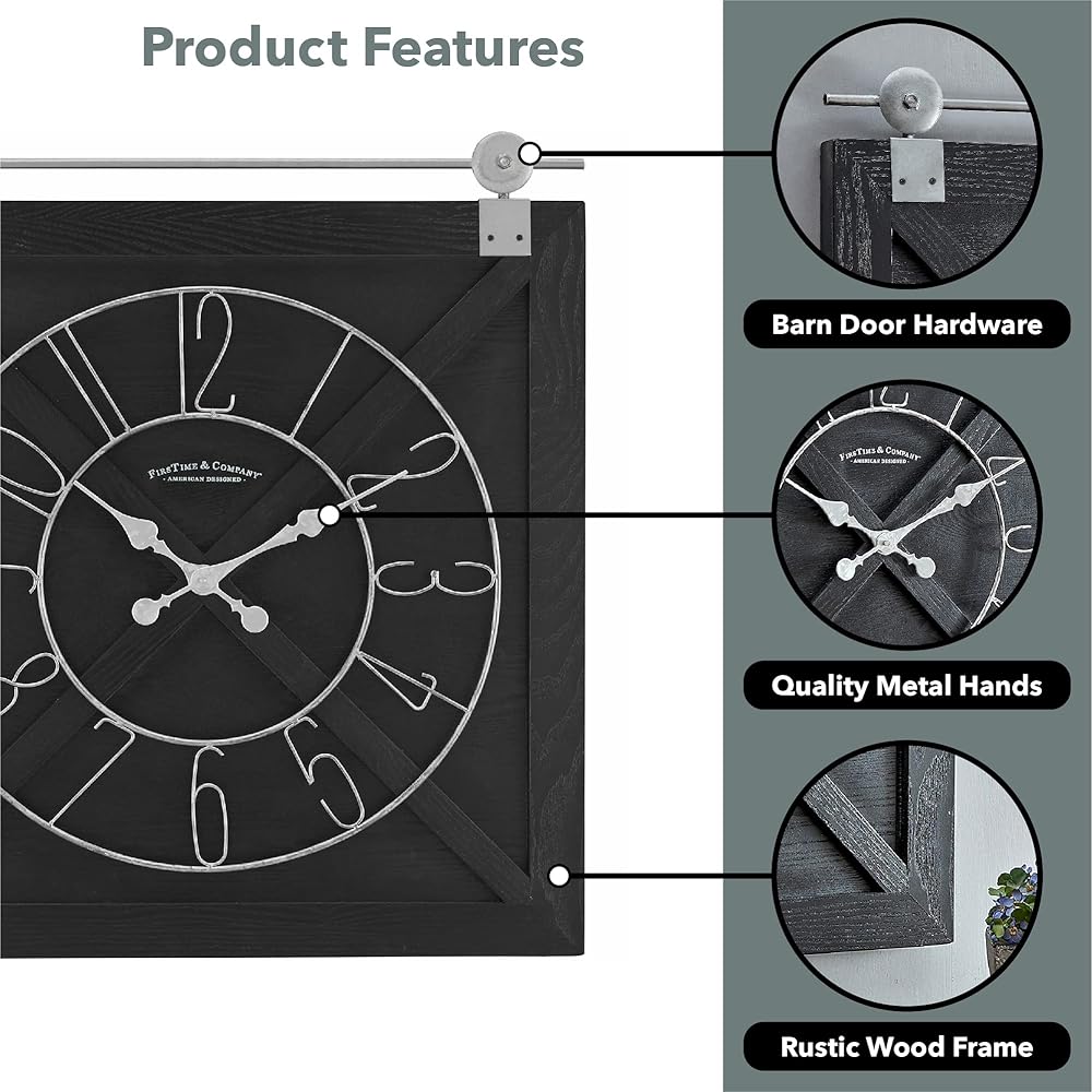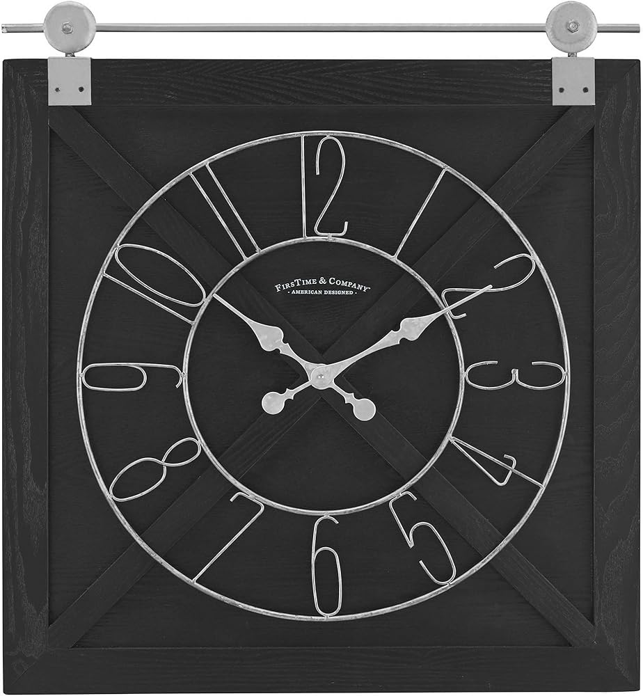 FirsTime & Co. Black Farmstead Barn Door Wall Clock for Home Office, Kitchen, Living Room, Bedroom, Square, Wood and Metal, Farmhouse Decor, 29 x 27 inches