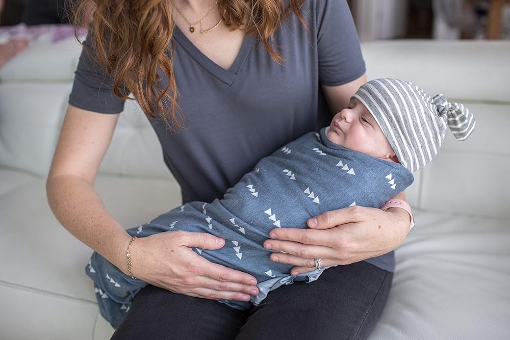 This lightweight, stretchy, and modern knit swaddle blanket set is made from the softest premium fabric and provides the perfect blankets to wrap up your little one. The blankets are just right for swaddling, as all-purpose receiving blankets, and as playmats--for when your child graduates to tummy time, independent sitting, and beyond.. Because of the blankets' generous size, your baby is sure to continue treasuring them throughout the toddler years; they are bound to become his or her favorite security blankets. All edges are serged to ensure high quality and long lasting durability. With its trendy and modern designs, this premium baby swaddle blanket set makes the perfect gift for new moms: one that will last for years as baby grows.