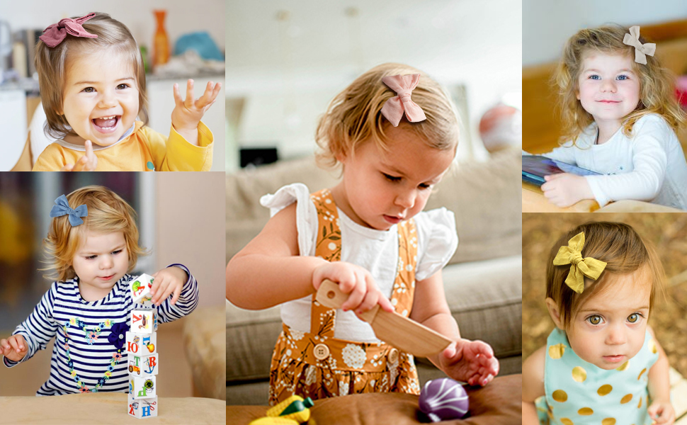 💕 【Stay In Fine Hair】Each baby hair bow is fully aligned with a stainless steel alligator clip, which is EASIER but safe to clip into a girl's hair and stay on comfortably and securely in the finest of hairs.