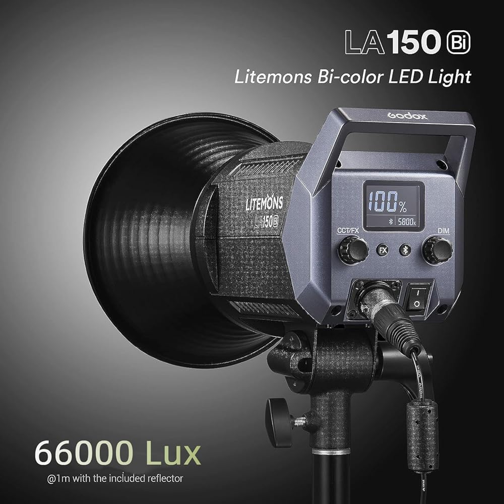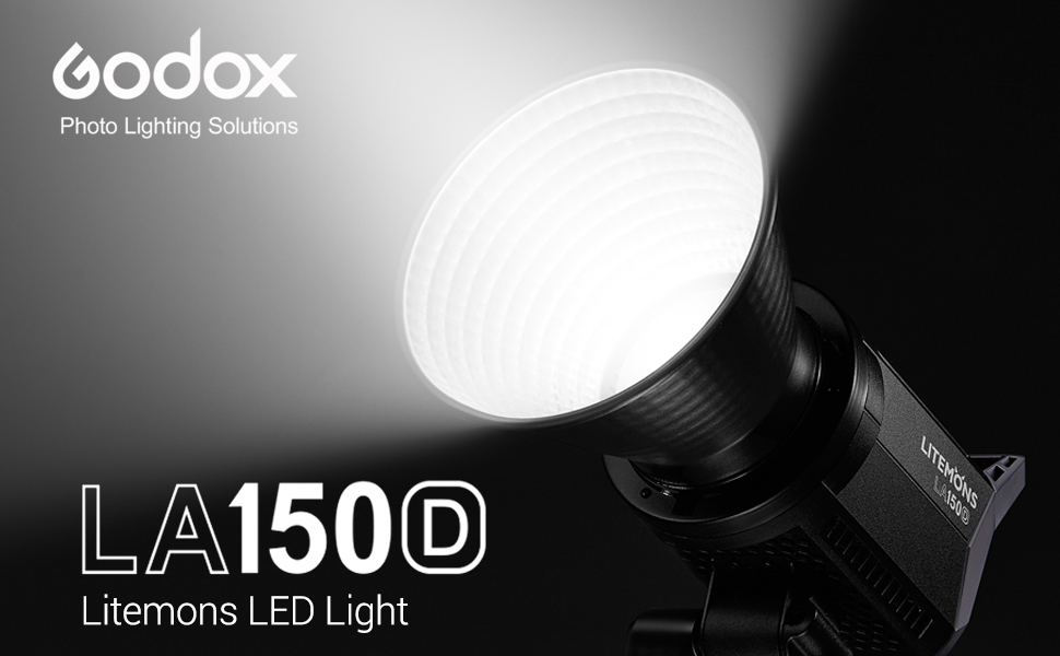 【Powerful Output】190W, 5600K, with the reflector, Godox LA150D led video light with 84800Lux at 1M, creating an impressive bright light. With Dimming from 0% to 100%, can achieve lighting flexibility in different scenes results.