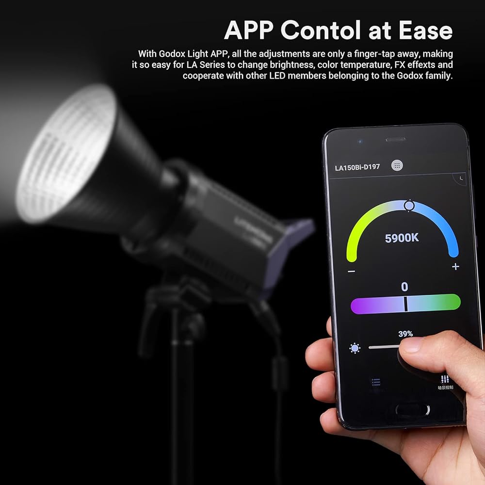 【APP Control & Bowens Mount】All parameters of LA150D video light can be adjusted via Godox Light APP, it can also be linked with Godox's other LED lights. Compatible with bowens mount to create more creative lighting effects.