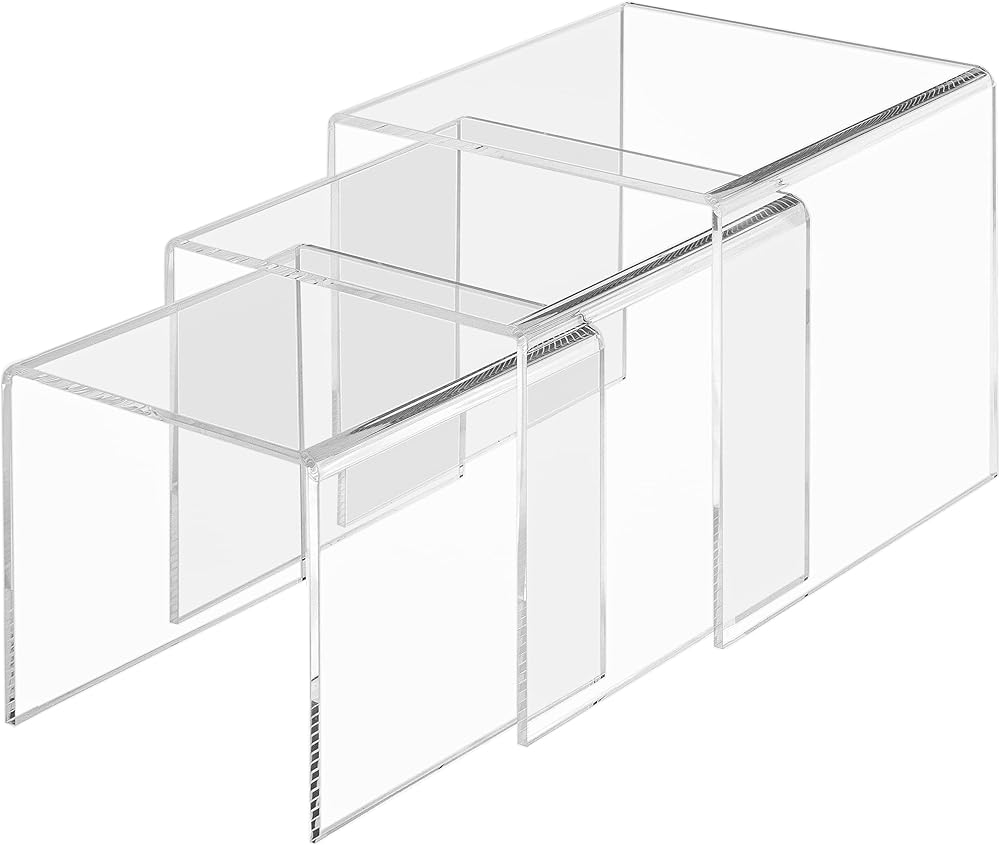 Create eye-catching displays with this clear acrylic riser set. Set contains 3 risers.