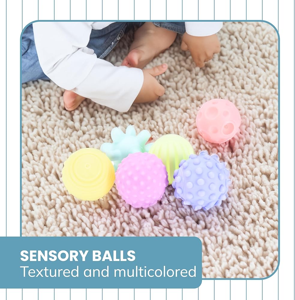Botabee Sensory Balls for Babies - 6 Pack, Textured Multi Soft Ball Set for Toddlers 1-3, Multicolored Montessori Toys for Infant Development, Safe and Educational Baby Toys 6 to 12 Months