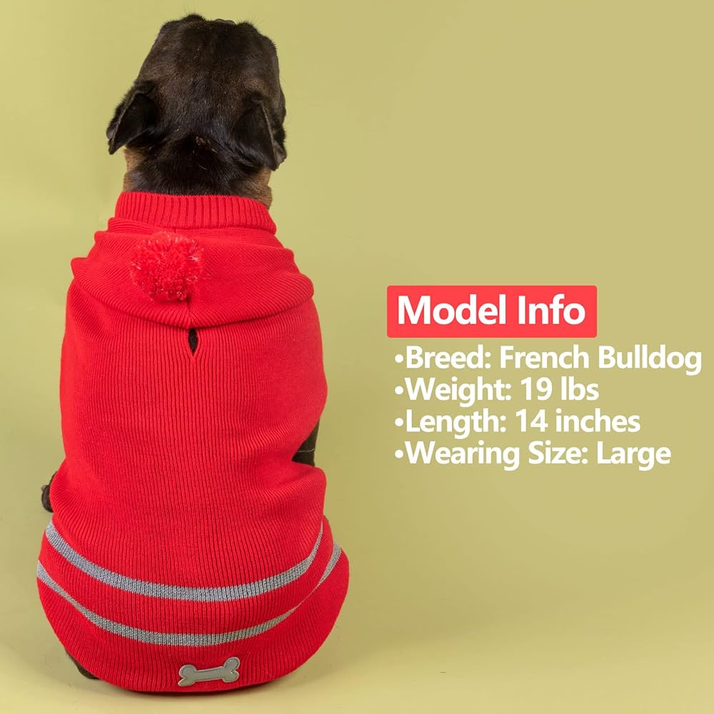 Dog sweater with smart leash hole on the back for a easy leash attaching. Pullover dog hoodie sweater is made of acrylic ,very stretchable ,soft and comfortable fit.