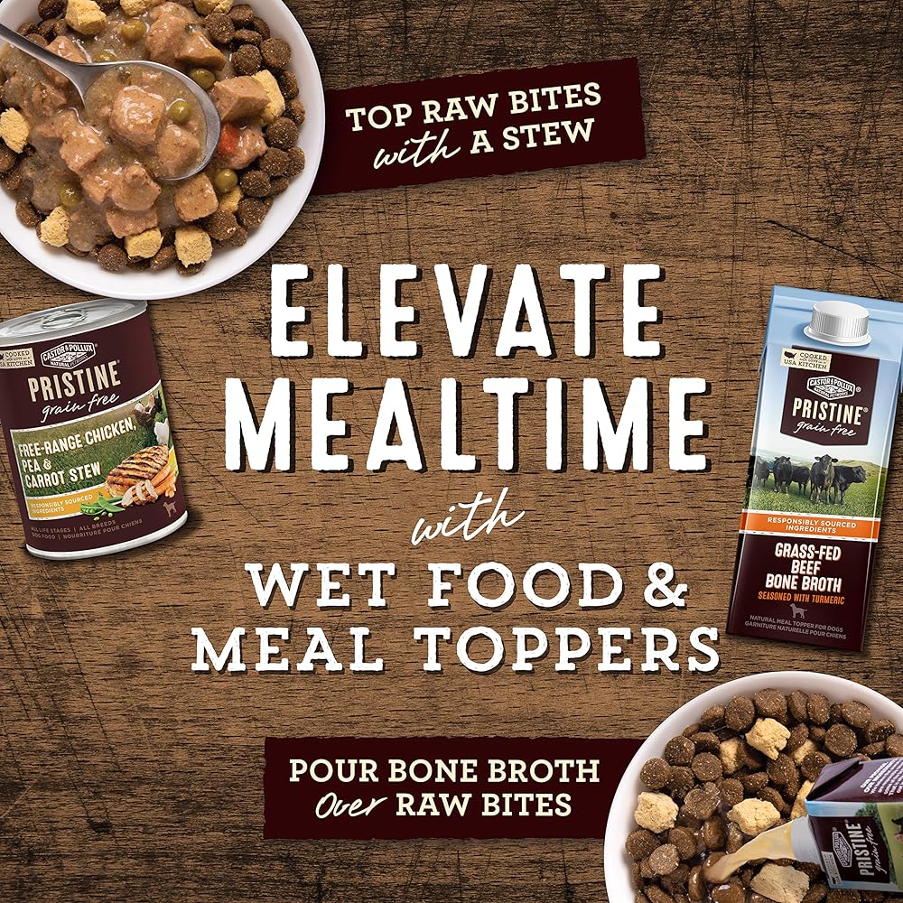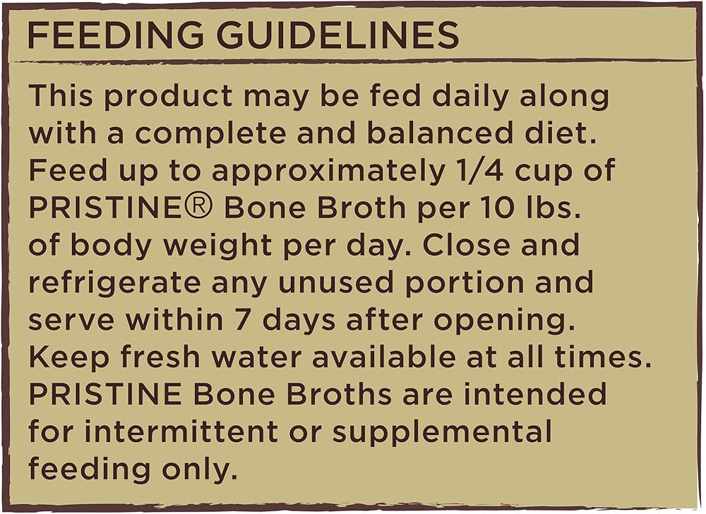 Use pristine bone broth as a savory topper for your dog's favorite pristine kibble Recipe, use in place of water to enhance pristine freeze-dried raw kibble, or serve alone