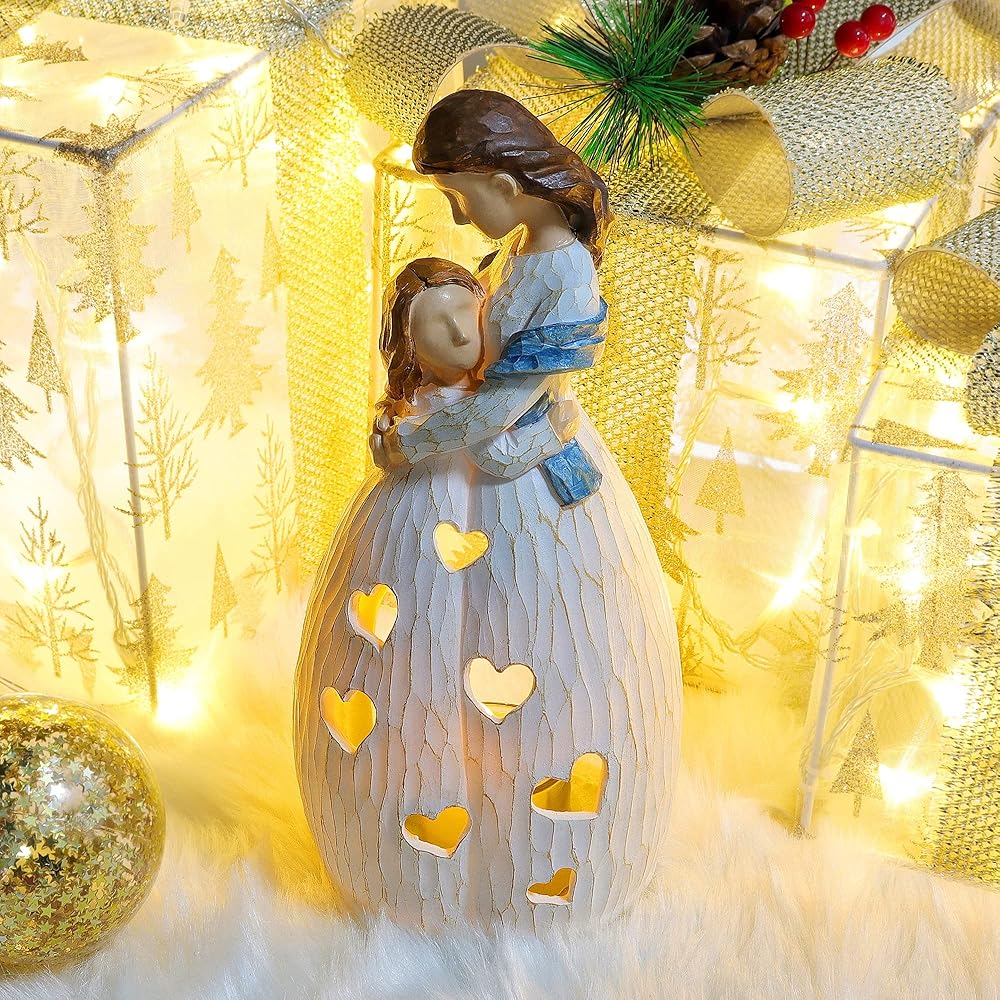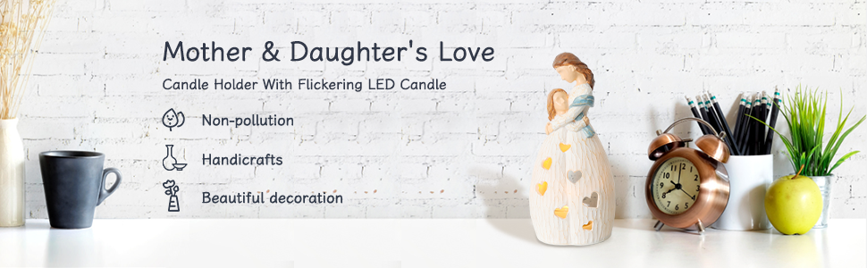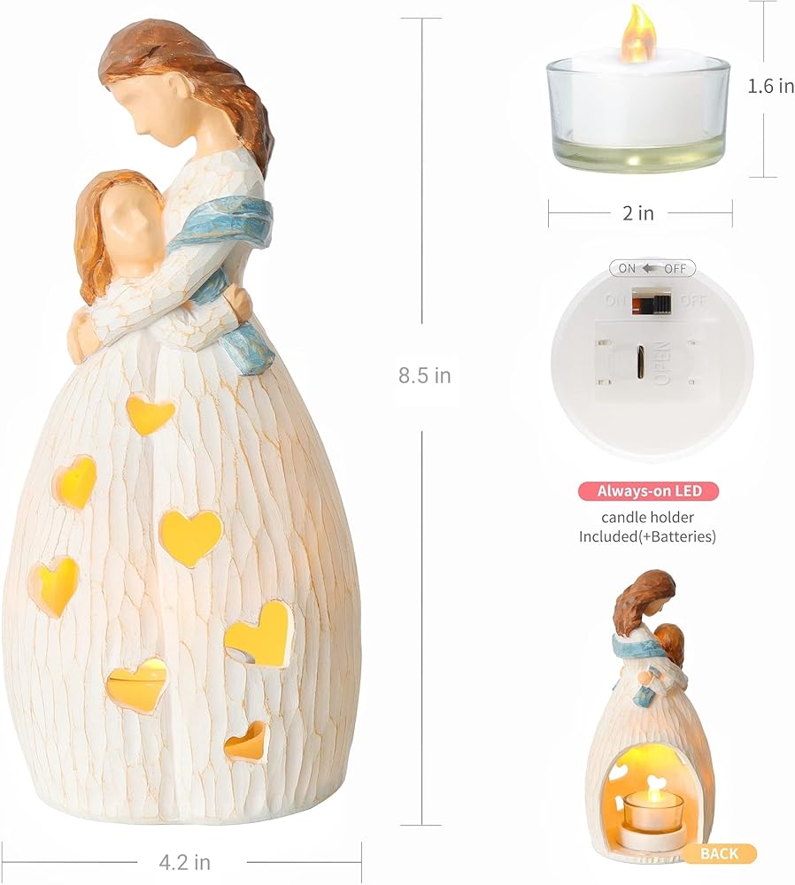 PERSONALIZED MOTHER DAUGHTER GIFT: Our mother & daughter candlestick statue makes perfect for mom gifts or gift to your daughter. With a flickering LED candle, add stylish charm for your home and better express the deep of your love