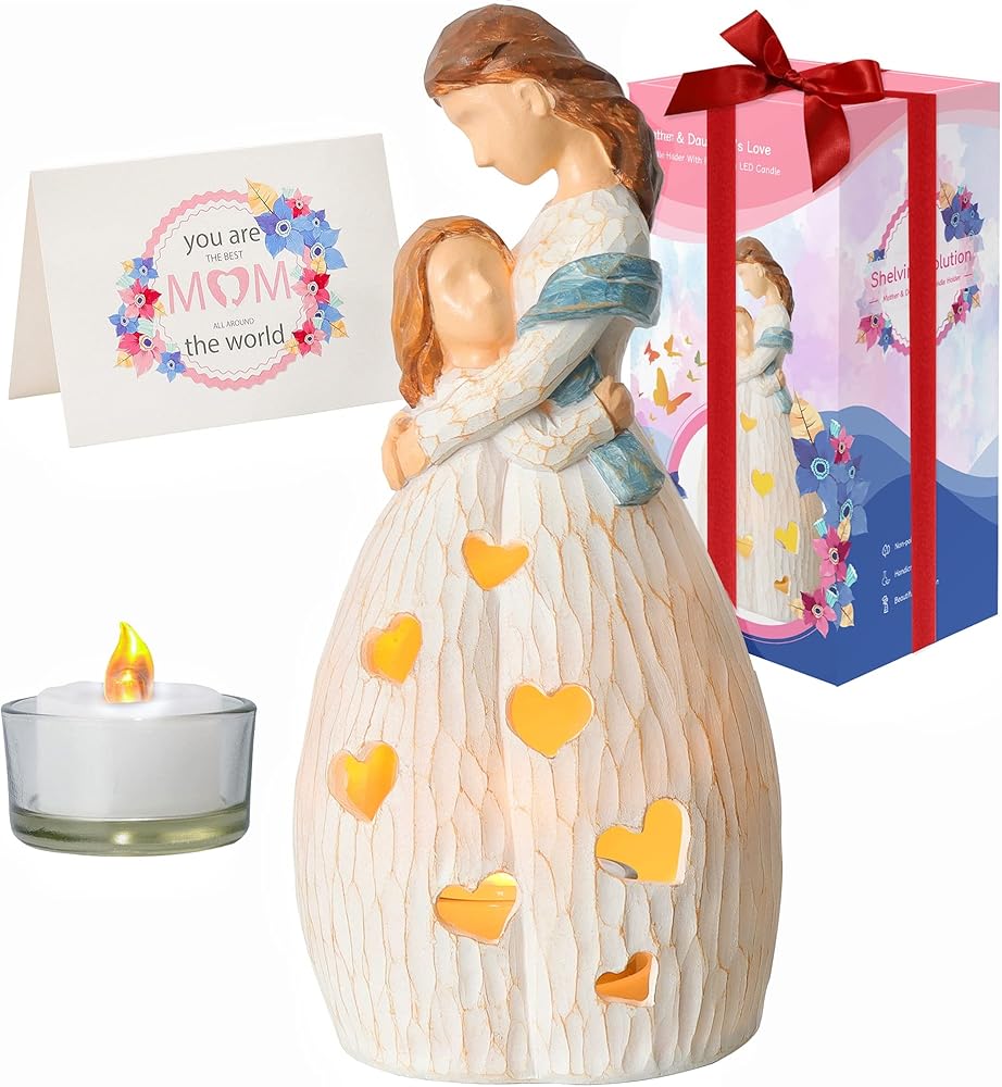 Shelving Solution Gifts for Mom, Mother & Daughter Candle Holder Statue, from Daughter with Flickering LED Candle for Christmas Birthday Bride Gift Home Bathroom Tabletop Ornaments