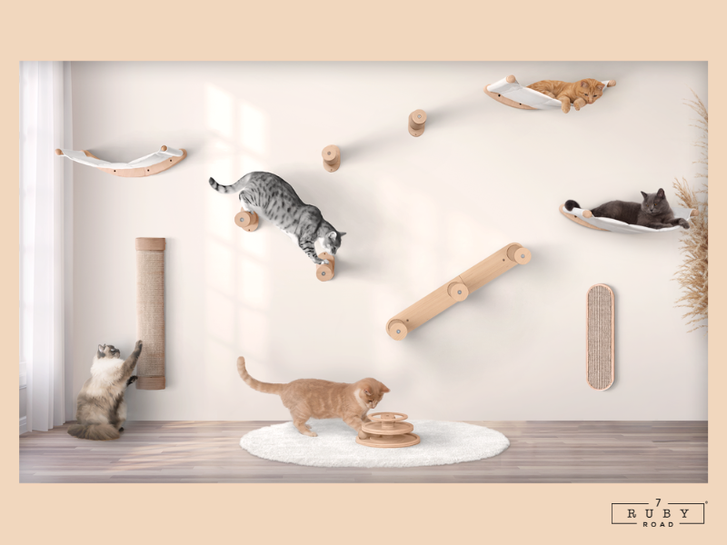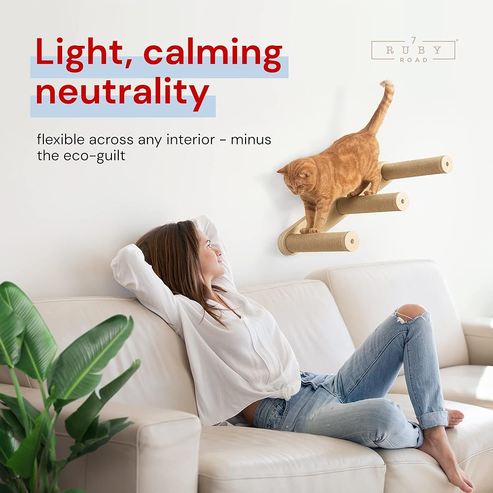 Unlock Your Cat's High Ground - Cats are natural born climbers that love to perch in high places. Create the kitty kingdom your cat deserves with 7 Ruby Road HOPPA 3-stair cat steps and cat wall shelves.