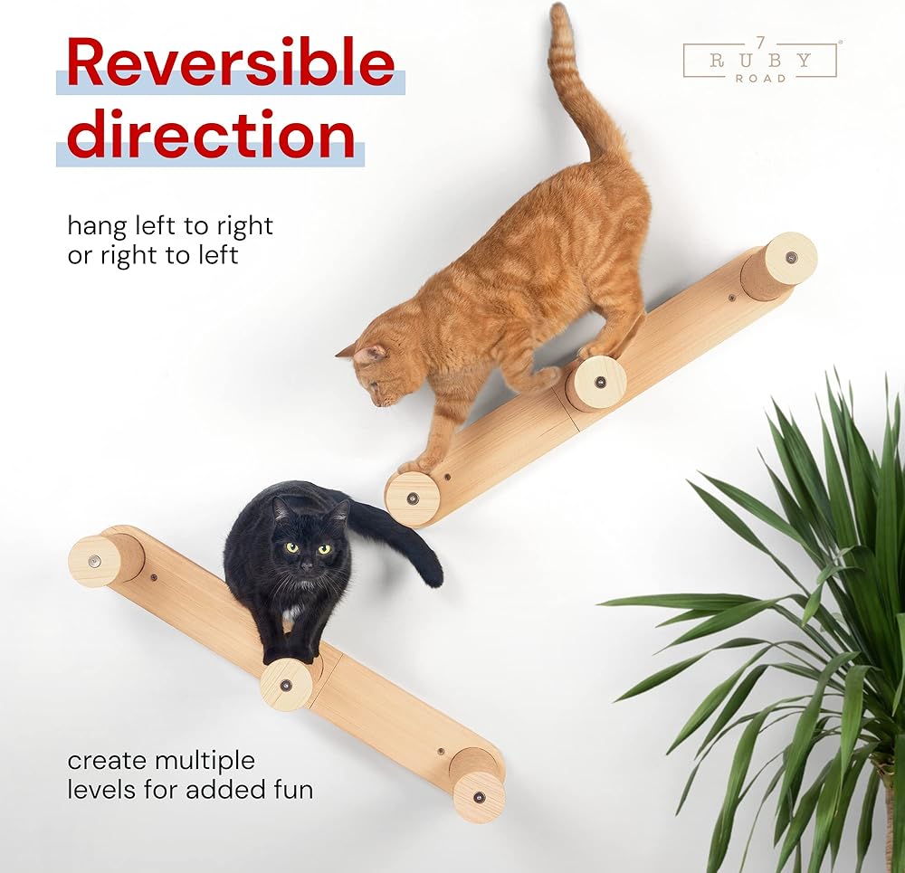 Reversible & Customizable Fun - Hang your new HOPPA cat steps for wall, left to right or right to left. Add a splash of paint to create your own custom cat climbing wall. Save money on our 2-in-1 wall mounted cat furniture.