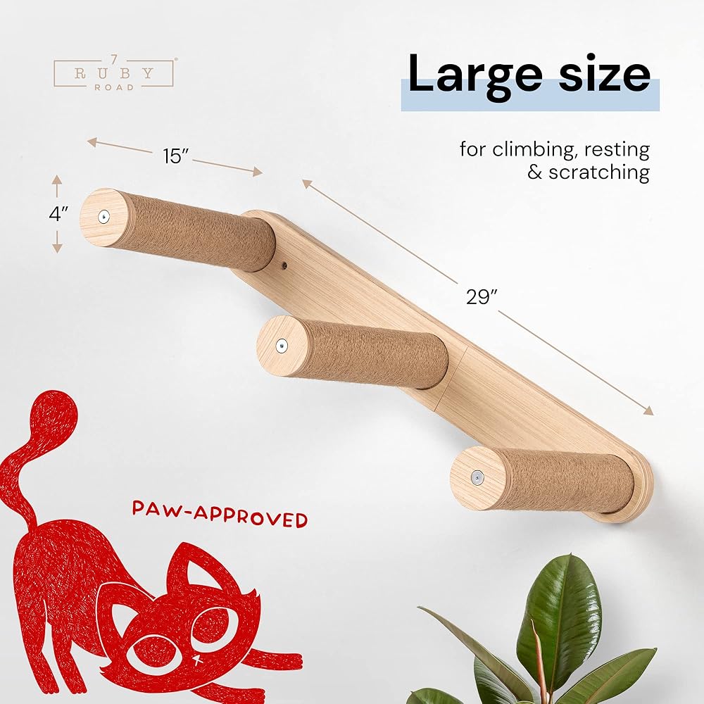 Large & Stable to Handle Big Cats – substantial at 29" x 15" x 3" our cat shelves and perches for wall steps can easily support all domestic cats. Made using high-grip, heavy-duty woven jute rope to keep your cat safe.