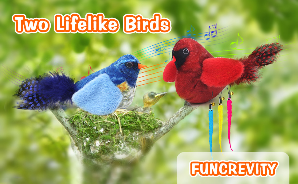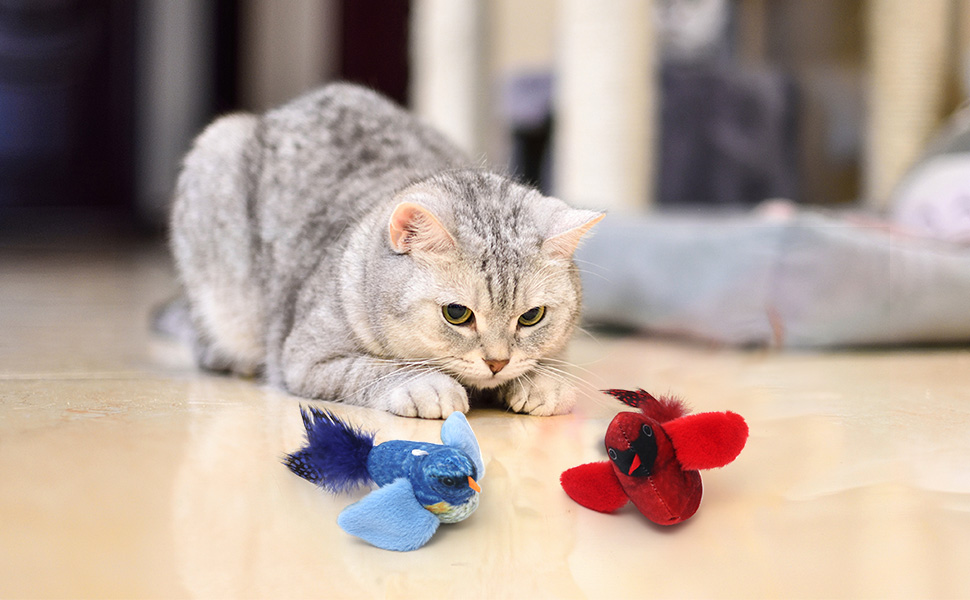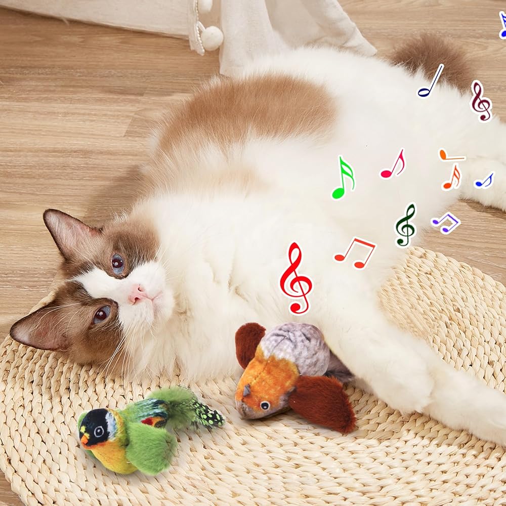 Realistic Bird Toys - Our bird toys are not just toys; they're a realistic experience for your cat. The 4-inch chirping titmouse, crafted from soft plush and natural feathers, supports authentic bird chirping sounds up to 10000 times, stimulating your cat's natural pursuit for prey.