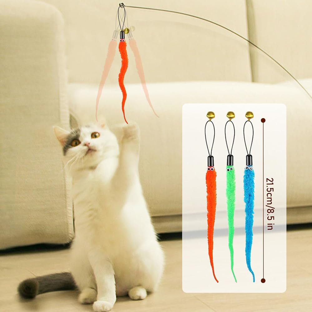 Cat Toy Variety Pack - Indulge in our cat toy set's value, featuring a range of feather cat toys including two lifelike bird toys, three vibrant caterpillars, a handy triangle hook for self-play, and a realistic mouse. These interactive cat toys are designed to fulfill every aspect of your cat's exploratory and predatory needs.