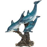 • This stunning coral decor figurine of three sea turtles swimming on a coral reef base. Made of polystone in beautiful shades of bronze, silver, and royal pacific blue nautical decor is dramatic stylized decorative coastal accessory