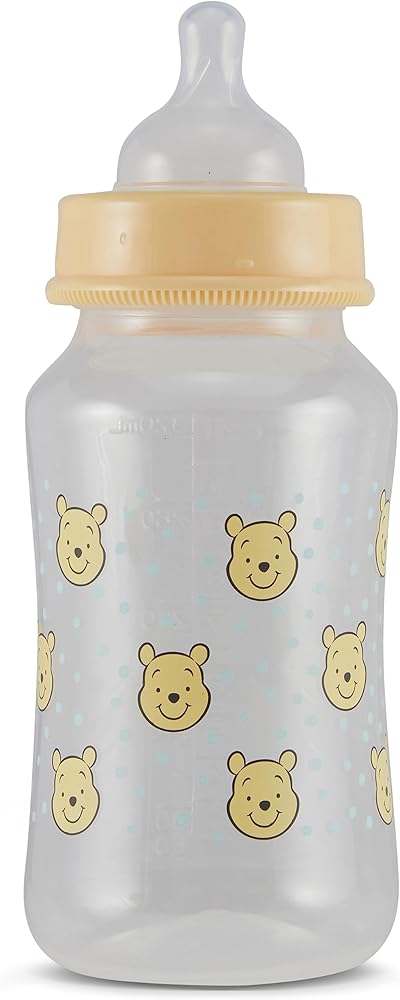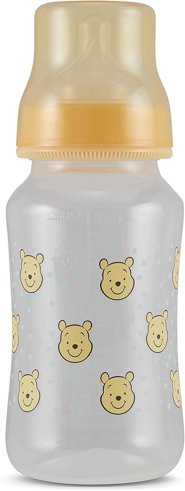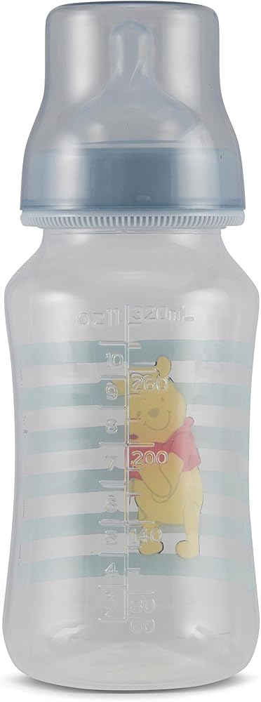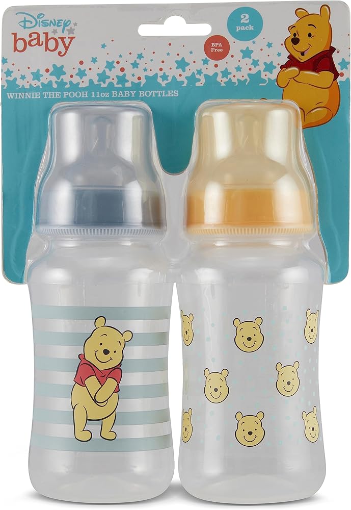 Feed your baby with these adorable blue baby bottles featuring Disney Characters. These 11 oz baby bottles are made from BPA-free materials and checked for safety. The extra wide nipple is medium flow and works for infants of all ages. Newborns only need a few ounces at first but quickly gain more of an appetite, so the 11-ounce capacity of this baby bottle is convenient. The 11 OZ patterns featuring Disney baby bottle and gender neutral enough that this bottle works for baby girls and baby boys. Gift this baby bottle set to new parents during Christmas, baby showers, and other special occasions.