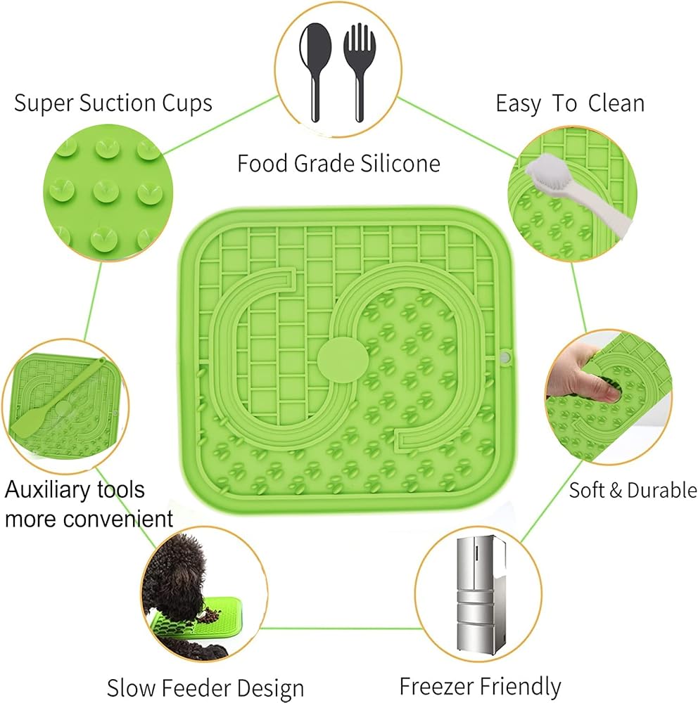 🐶【Health Material Dog Licking Mat with Suction Cups】-- Our lick pad for pet is made of BPA-free silicone,safe and durable. has 3 uniquely textured. Not only can used as licking mat for licking runny food,like peanut butter, canned food, yogurt, pumpkin purée but also ideal as slow feeder mat for slow food,like dog food, cat food, beef jerky, snacks.The powerful suction cups can secure it on bath tub,shower wall,floor. Ideal as a anxiety reliever for grooming, bathing, nail trimming, vet visit.